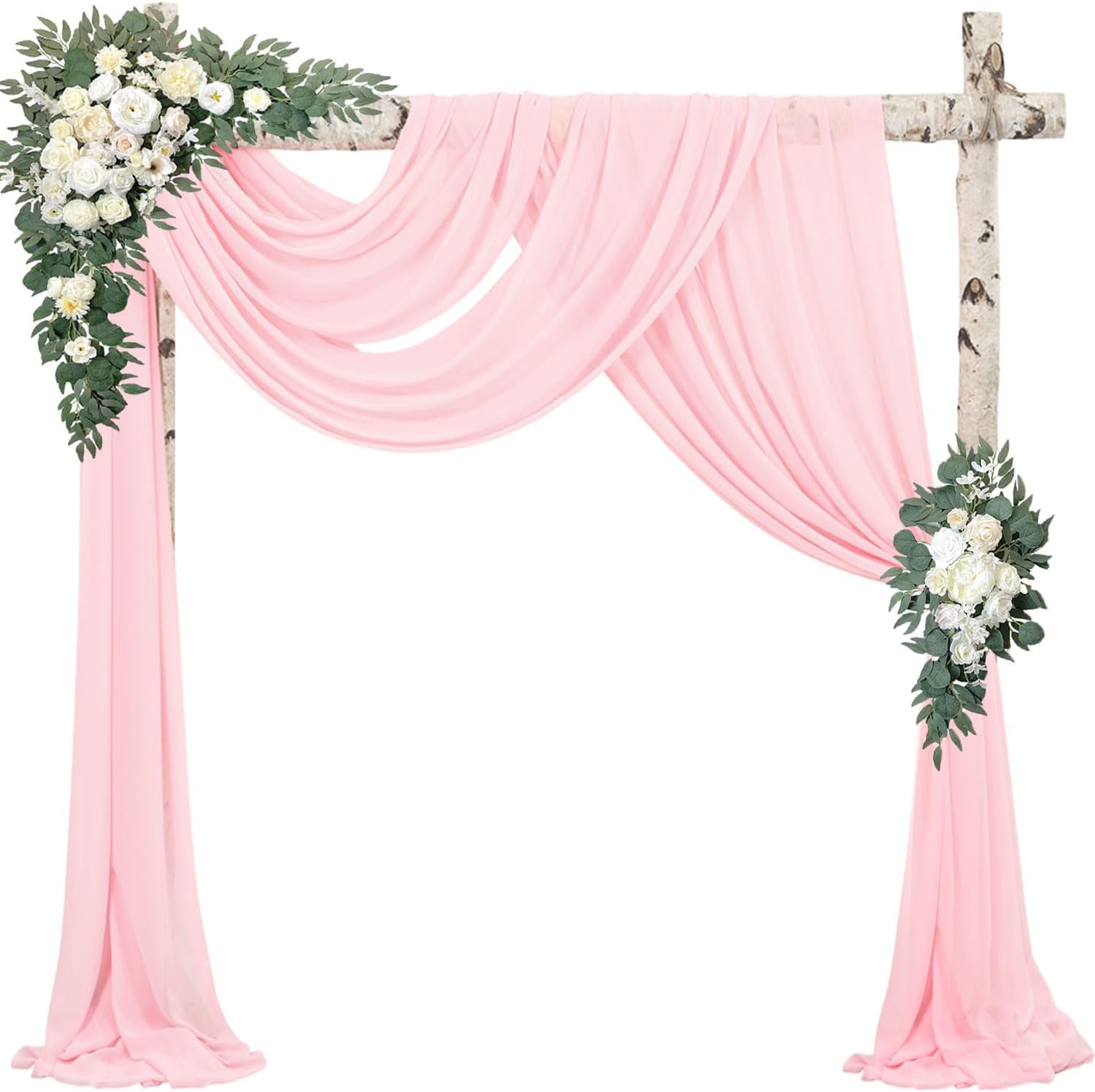 • Wedding Arch Draping Fabric Material: The wedding arch draping fabric is high-quality chiffon fabric, it is very smooth to the touch, soft and does not wrinkle. They create an eye-catching detail that brings long-lasting visual enjoyment, they are perfect for wedding decorations and ceremonies.