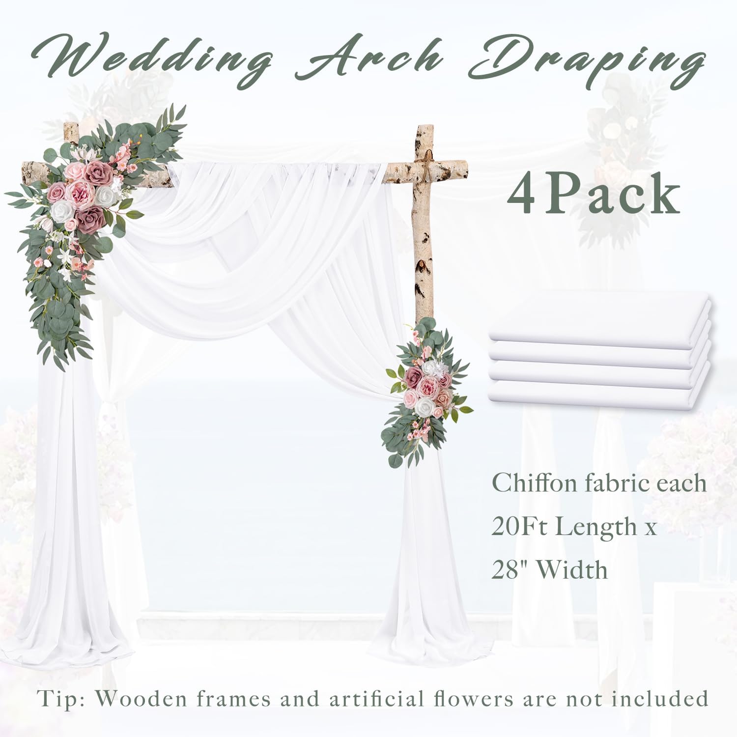 Wedding Arch Draping Fabric 4 Panels 20Ft Length x 28" Width White Arch Drapes Chiffon Fabric Sheer Curtains Backdrop for Party Bridal Decorations Wedding Ceremony Ceiling Stage Reception Decor