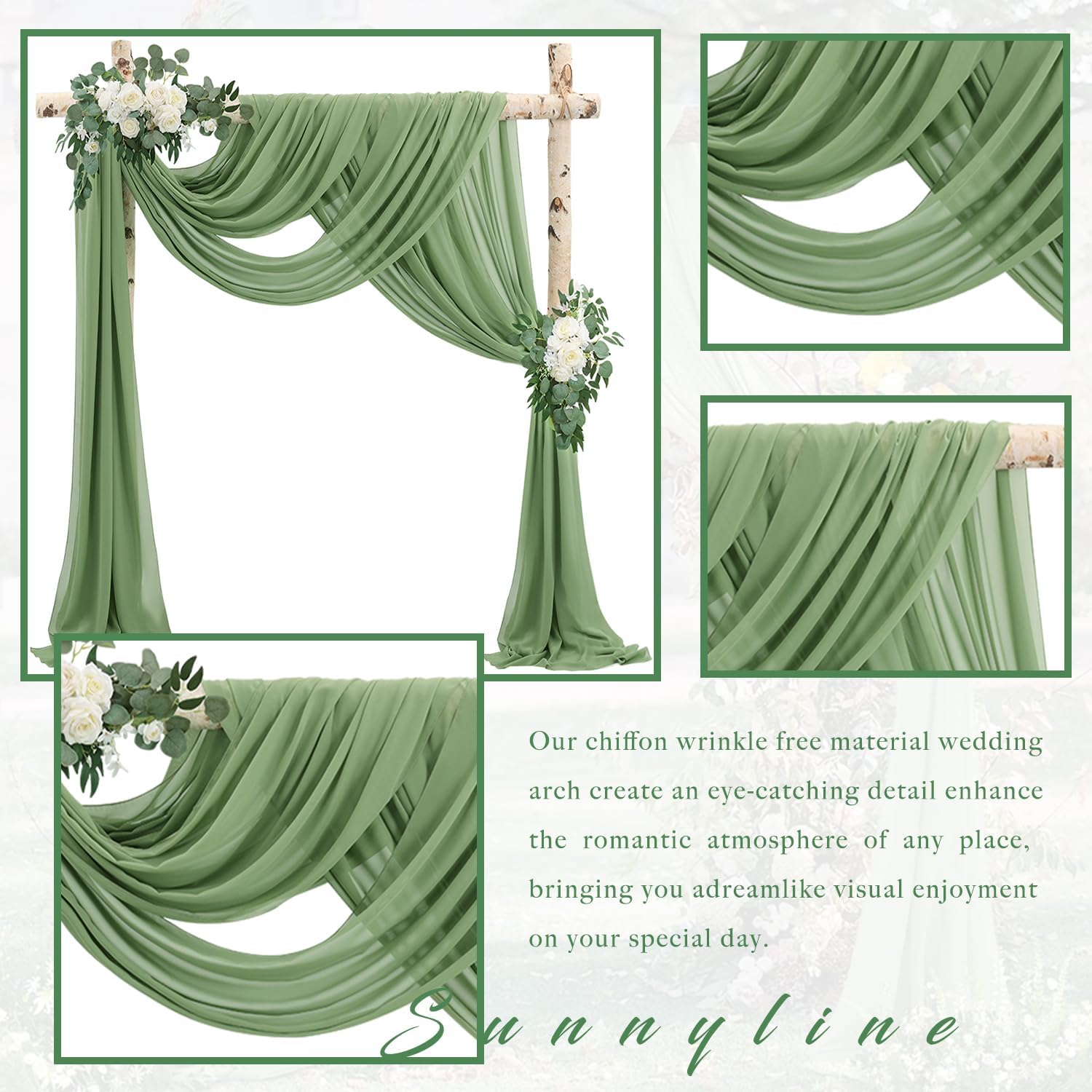 Wedding Arch Draping Fabric 2 Panels 20Ft length x 28" width Sage Green Arch Drapes Chiffon Fabric Sheer Curtains Backdrop for Party Bridal Decorations Wedding Ceremony Ceiling Stage Reception Decor