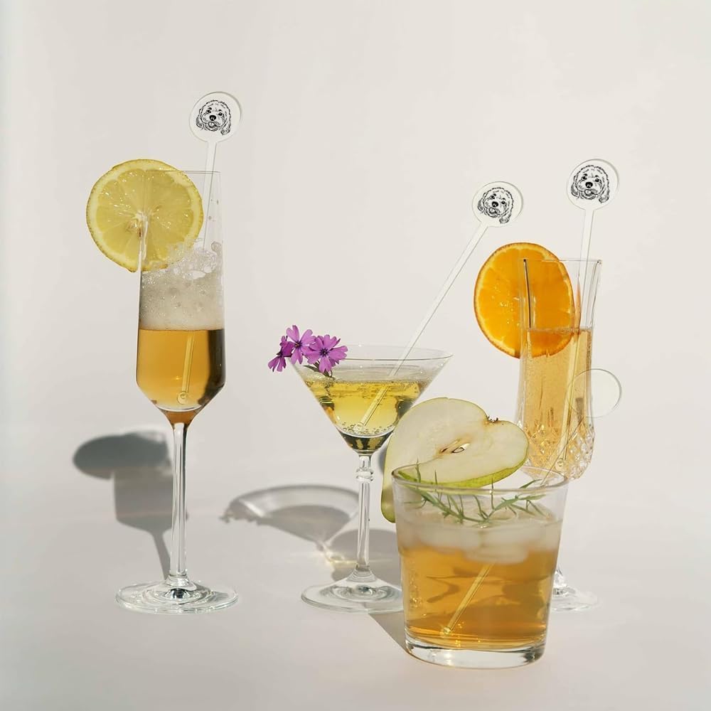 Coolslove Personalized Wedding Dog Stir Sticks, Custom Illustrated Pet Acrylic Cocktail Stirrers, Acrylic Cocktail Stirrers, Wedding Drink Sticks, Wedding Favors Decors Essentials Style 2