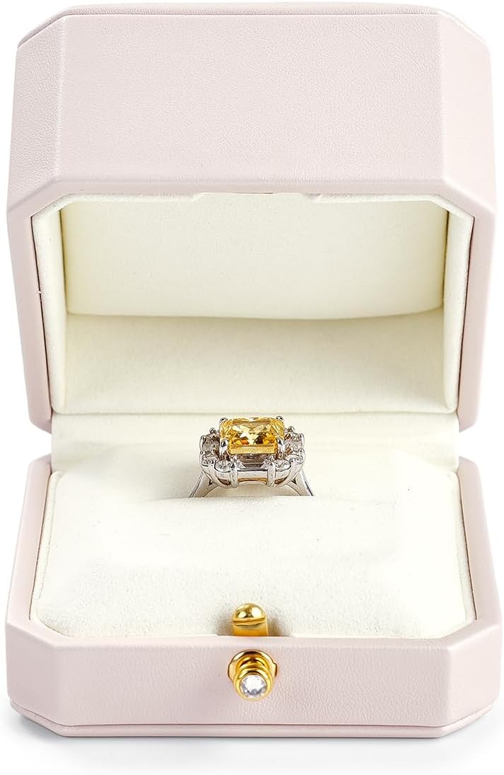 Oirlv Luxury Leather Ring Box for Jewelry Gift Octagon Women Ring Holder for Wedding Day, Proposal, Engagement, Anniversary(Pink,Single)