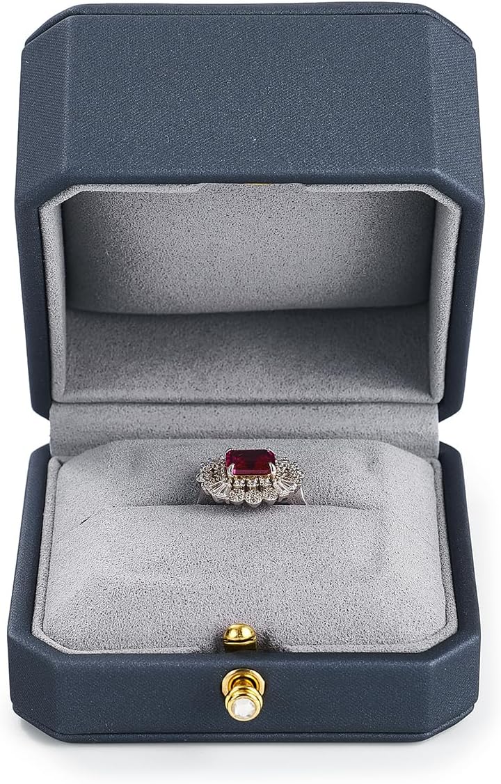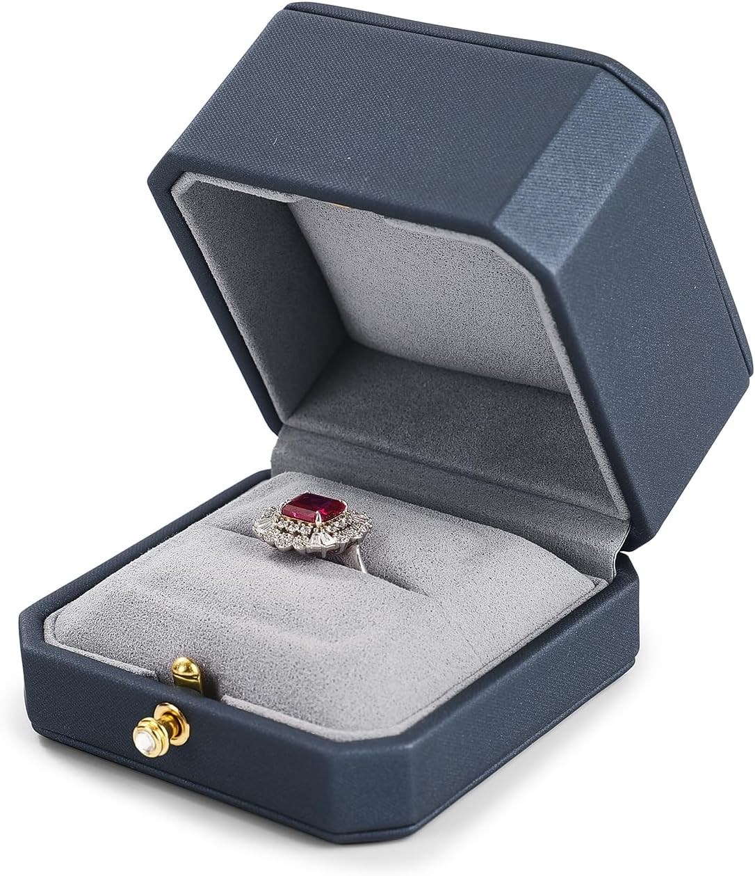 Oirlv Luxury Leather Ring Box for Jewelry Gift Octagon Women Ring Holder for Wedding Day, Proposal, Engagement, Anniversary(Blue,Single)
