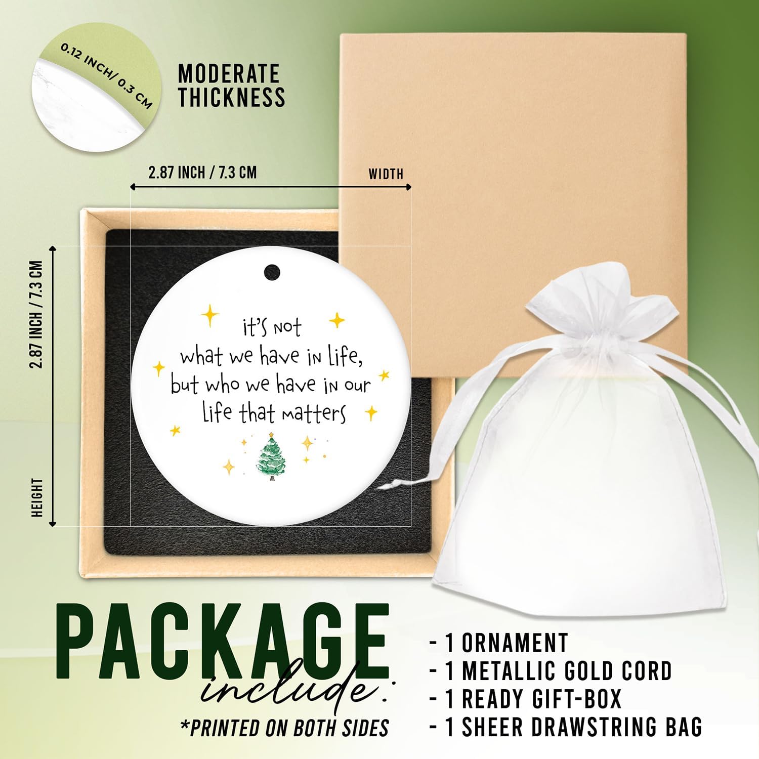 • THOUGHTFUL PACKAGE: Our Ornament comes complete with 1 Two-Sided Ornament, 1 Gift Box, and hanging cords. The two-sided design and attached hanging cords make it a breeze to hang anywhere from any angle, be it on trees or your home. Rest assured, the gift box ensures the ornament remains well-protected during transit, avoiding any damage