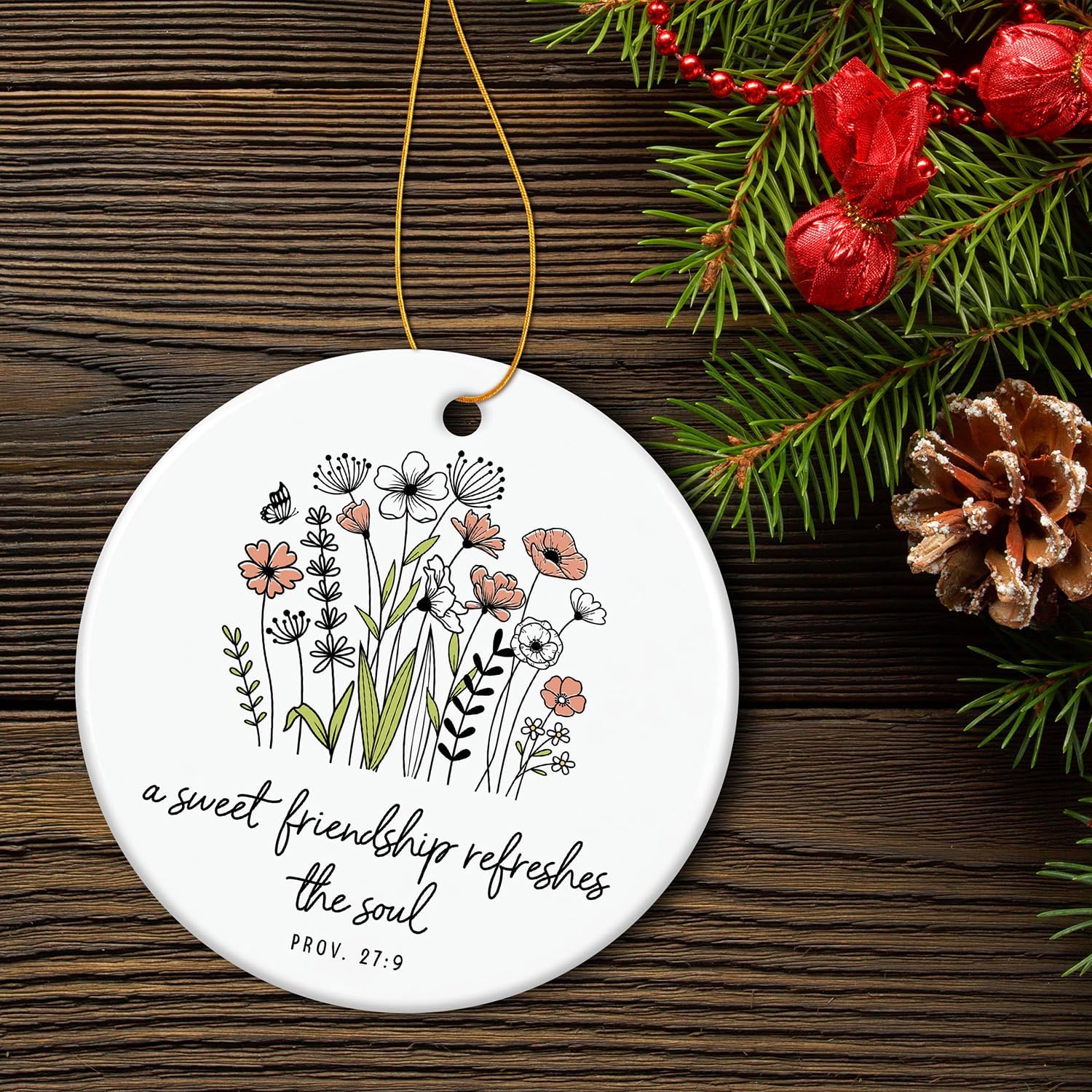 HEXMOZ Friend Ornament - Christian Friendship Gifts for Women, Best Friend Religious, Inspirational Bible Verse Proverbs 27:9 - A Sweet Friendship Refreshes The Soul Scripture - Christmas Ornament
