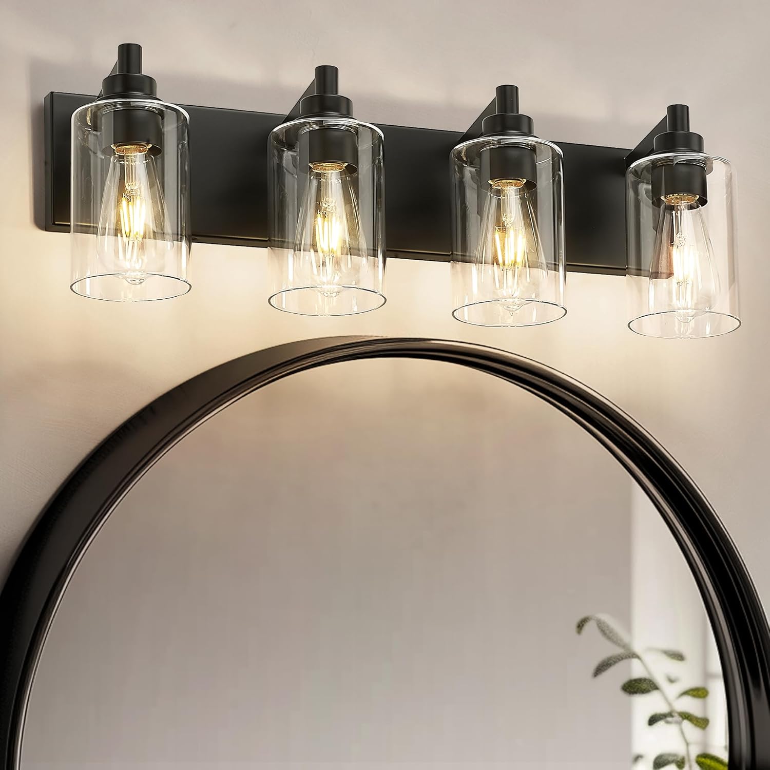• Inspired Design: This 4-light bathroom light fixtures over mirror features a matte black metal frame and elegant cylinder clear glass shades, seamlessly fitting modern minimalist decor. You can install it upwards or downwards for versatile style