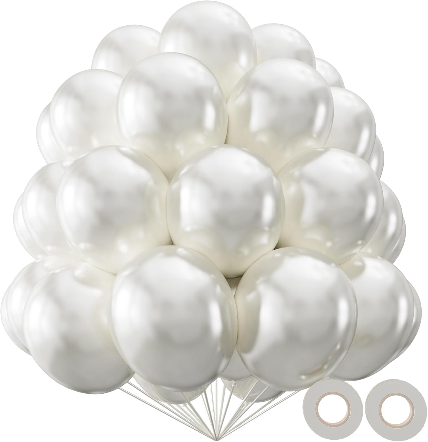 • 110-Count 12" Pearl White Latex Balloons:Premium bulk pack of 110 shimmering 12-inch balloonsβ€”perfect for weddings, upscale events, or elegant photo backdrops with a luxurious glow.