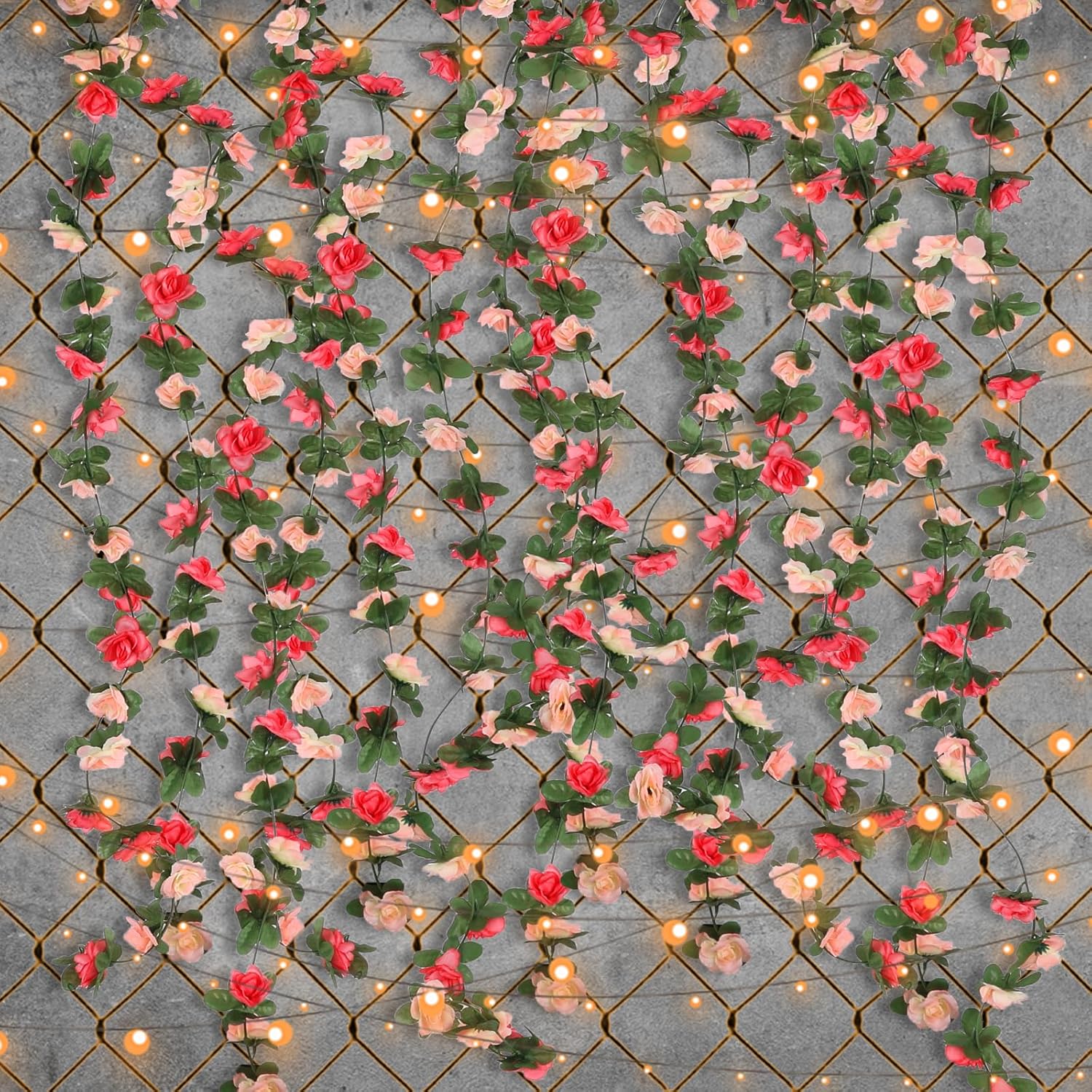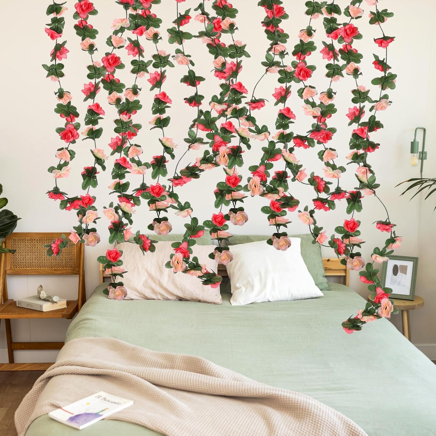 • PACKAGING: Total length 82FT, each vine 8.2FT (250CM), 10 vine plants hanging fake flower garland. Each plant has 45 flowers. Rose heads are 1.6โ€ (4CM) in diameter. 45 leaves. These 10 rose vines are fluffy enough to decorate your room!