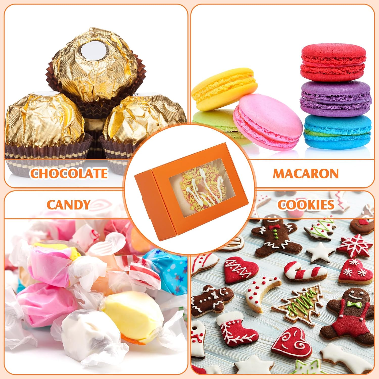 Zonon 30 Pcs Soap Boxes for Homemade Packaging, Mini Kraft Treat Boxes with Window for Bakery Candy Soap Making Gift Packaging(3.7 x 2.6 x 1.37 Inch,Orange)