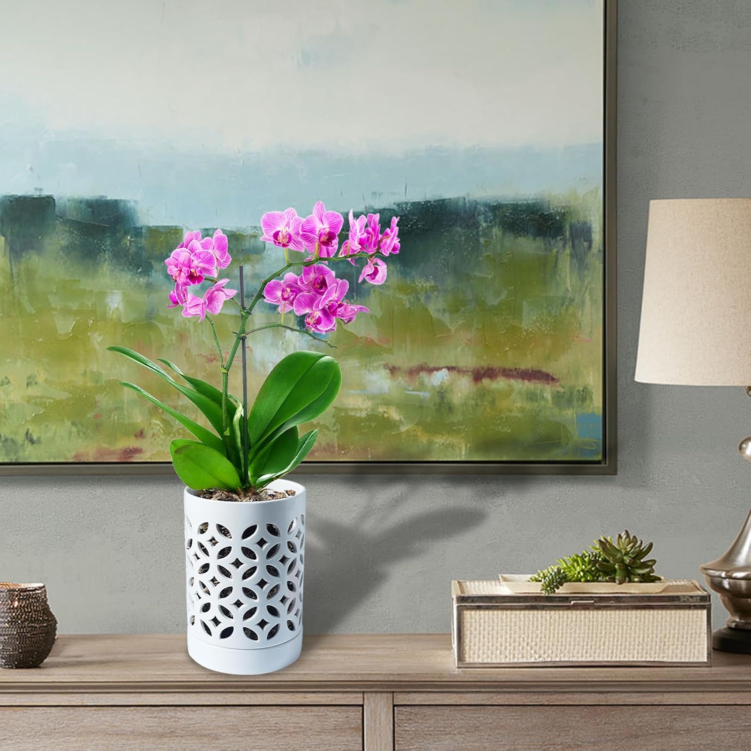 • [ Wide Useage ]This versatile orchid pot is suitable for placement in a variety of indoor and outdoor environments, including living rooms, bedrooms, balconies, windowsills, tables, and work desks. It is an aesthetically pleasing and ideal home for your orchids.
