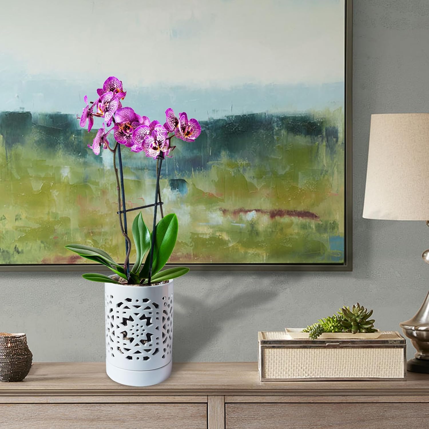 • [ Wide Useage ]This versatile orchid pot is suitable for placement in a variety of indoor and outdoor environments, including living rooms, bedrooms, balconies, windowsills, tables, and work desks. It is an aesthetically pleasing and ideal home for your orchids.