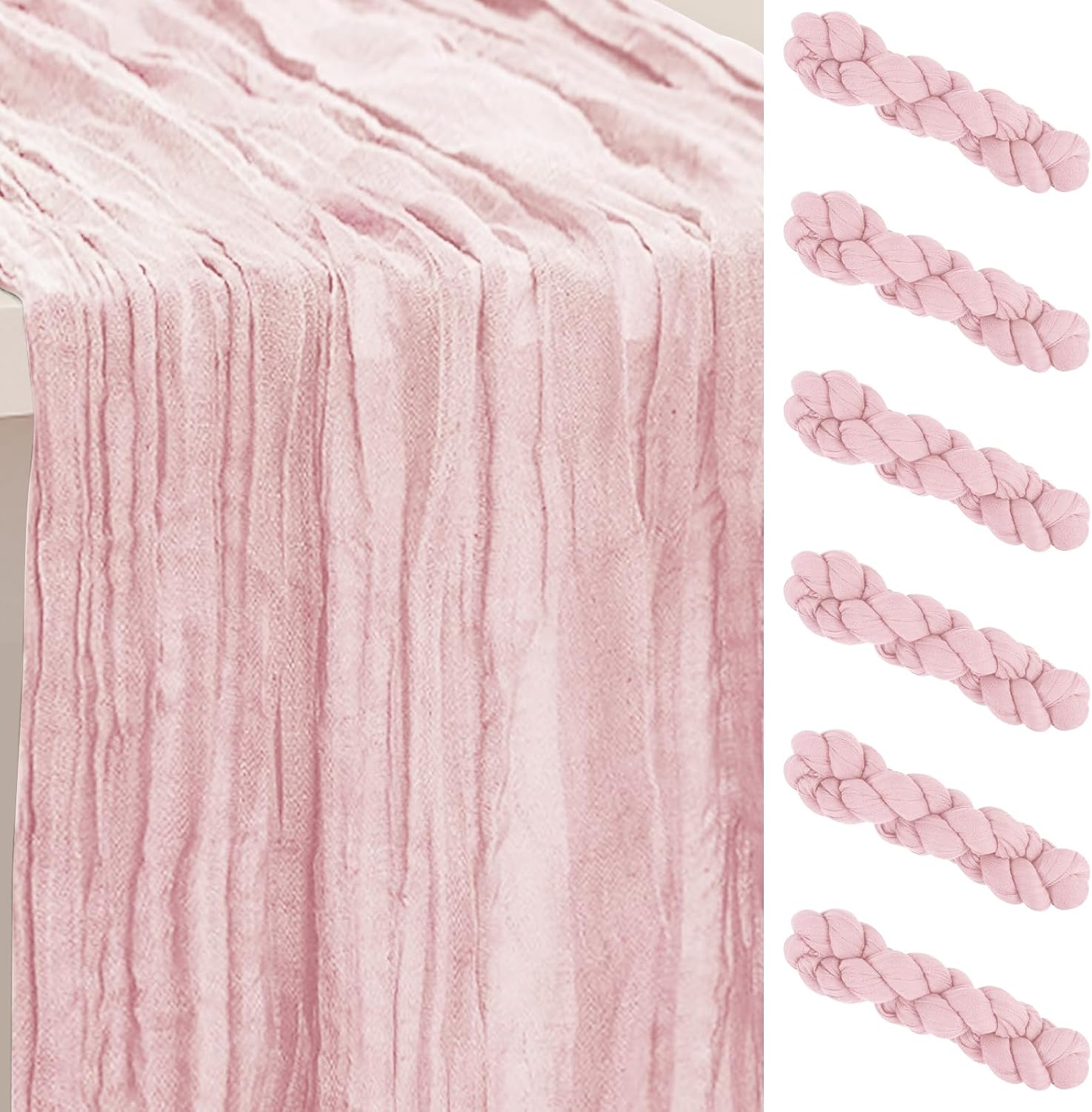 6 Pack Dusty Pink Cheesecloth Table Runner 35x120 Inch 10Ft Rustic Gauze Cheese Cloth Table Runner Sheer Cheesecloth Table Runners for Wedding Party Bridal Shower Decoration