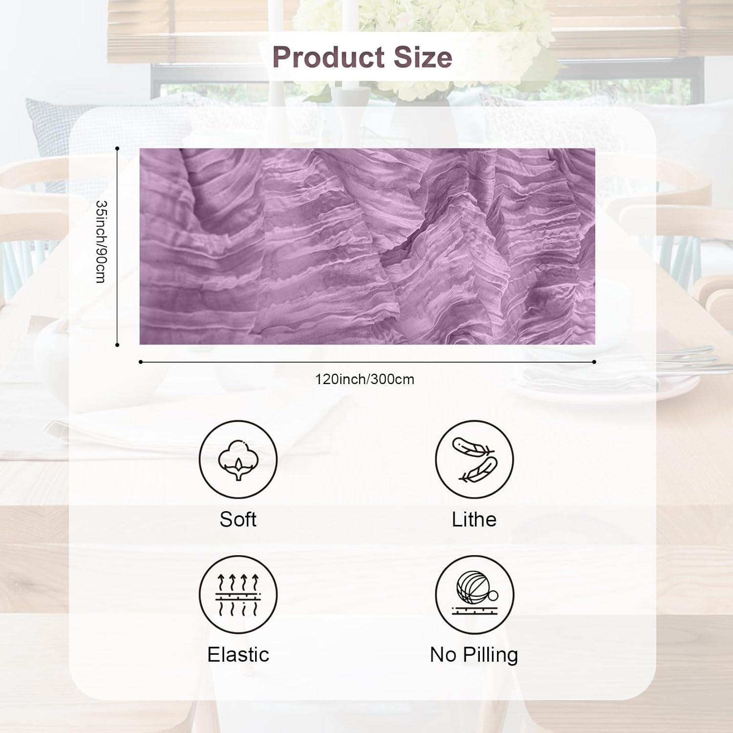 • Premium Materials: Our table runners are crafted from high-quality cheesecloth and gauze. The Lilac cheesecloth table runner has good softness and breathability, while the gauze table runner offers a delicate and elegant texture. These materials are carefully selected to ensure durability and a luxurious feel, making your table look and feel extraordinary.