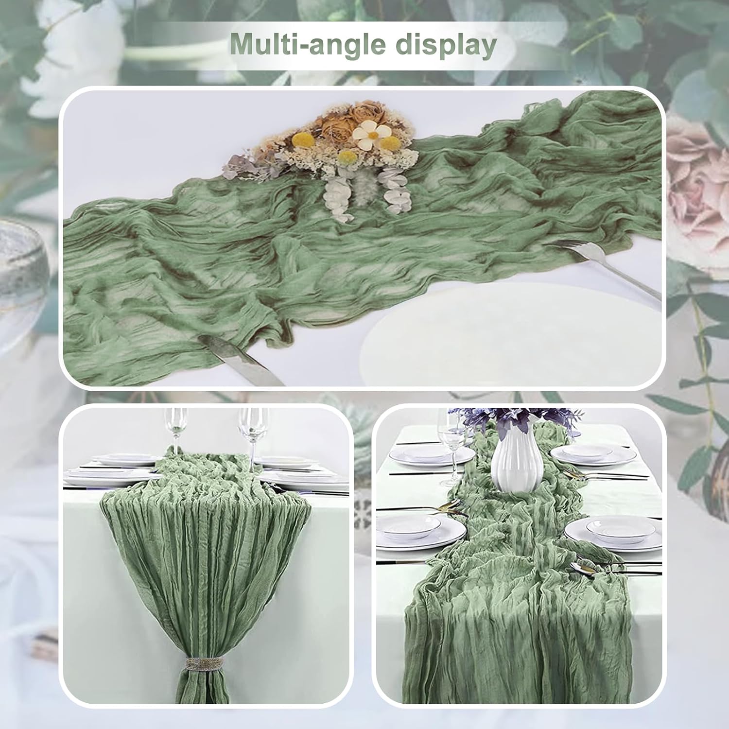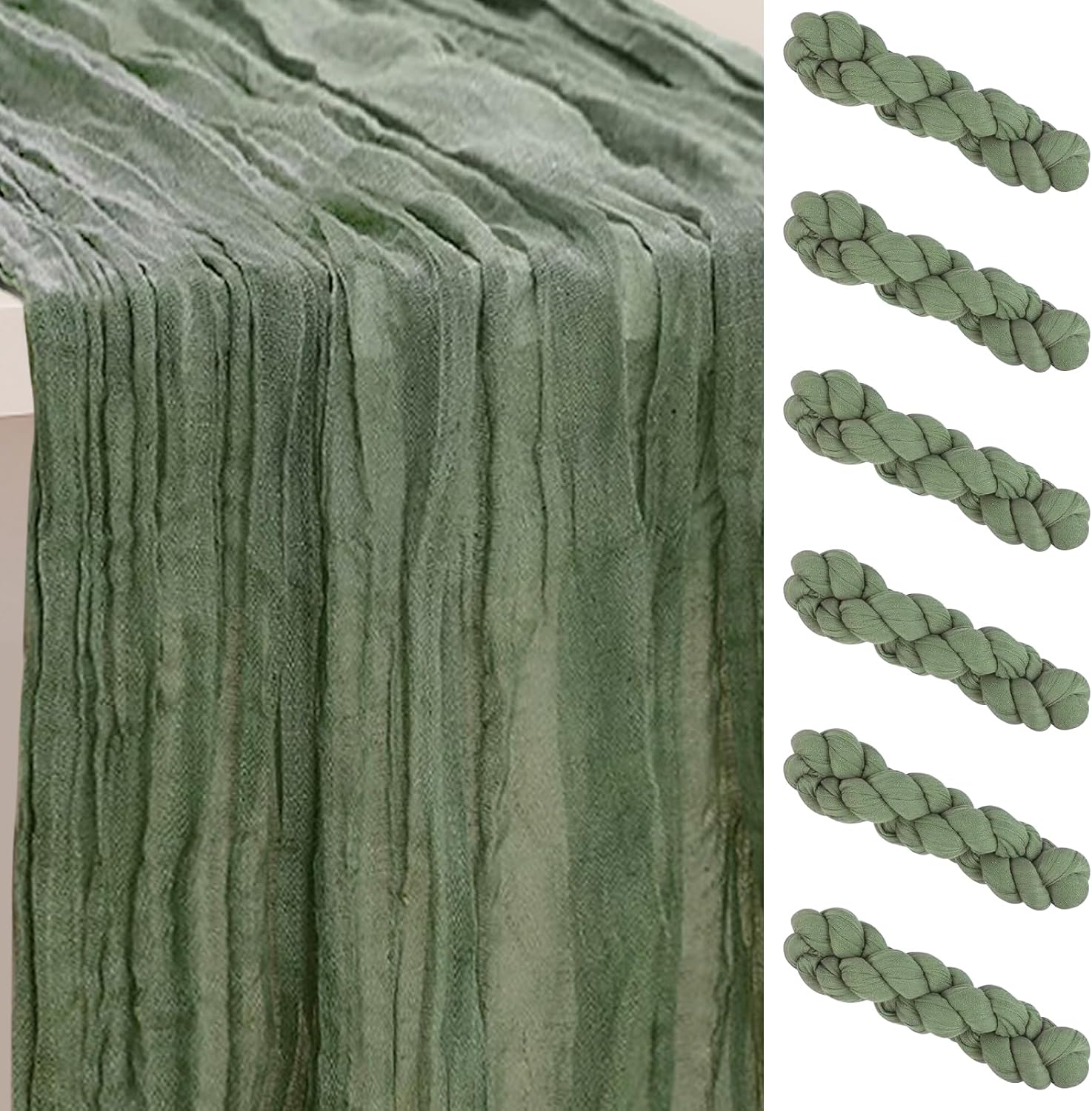 6 Pack Sage Green Cheesecloth Table Runner 35x120 Inch 10Ft Rustic Gauze Cheese Cloth Table Runner Sheer Cheesecloth Table Runners for Wedding Party Bridal Shower Decoration