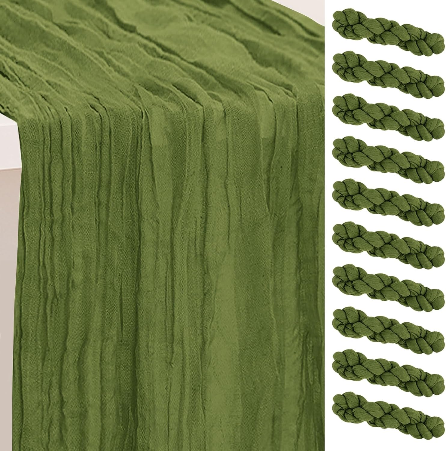 10 Pack Olive Green Cheesecloth Table Runner 35x120 Inch 10Ft Rustic Gauze Cheese Cloth Table Runner Sheer Cheesecloth Table Runners for Wedding Party Bridal Shower Decoration