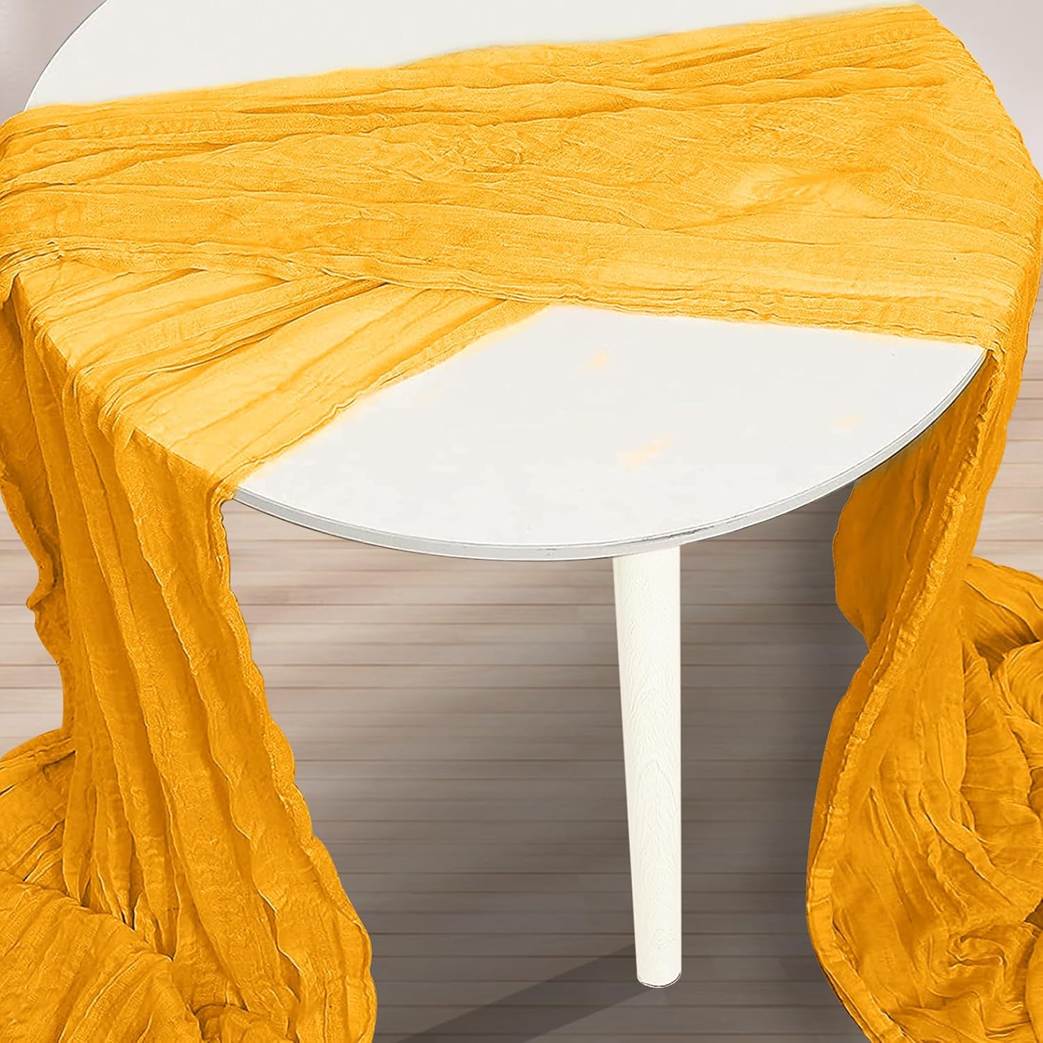 • User-Friendly: We understand the importance of convenience for our customers. Our gold rustic sheer table runner is easy to clean and maintain. They can be machine washed or hand washed without losing their shape or color. The lightweight and flexible nature of the cheesecloth and gauze make them easy to handle and store, saving you space and effort.
