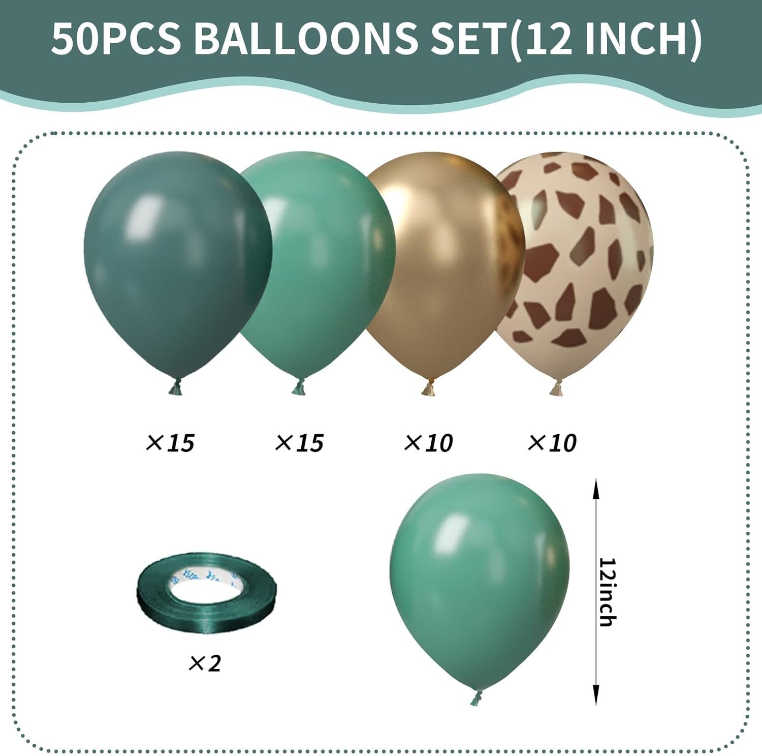 Green Giraffe Balloons, 50Pcs 12 Inches Dark Olive Green Metallic Gold Animal Print Giraffe Balloons for Boys Baby Shower Forest Woodland Birthday Wild Party Decorations