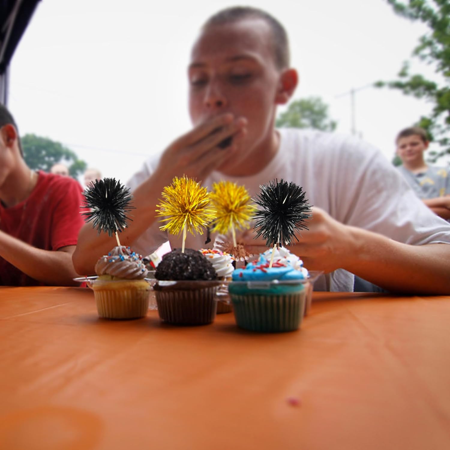 • -Premium Material: These Foil Firework Cupcake Toppers are made of high quality foil and food-grade toothpick, very safe to put them on cakes, cupcakes, ice cream, fruits, pie, dessert, cheese or any dish and food appetizer you want to decorate.