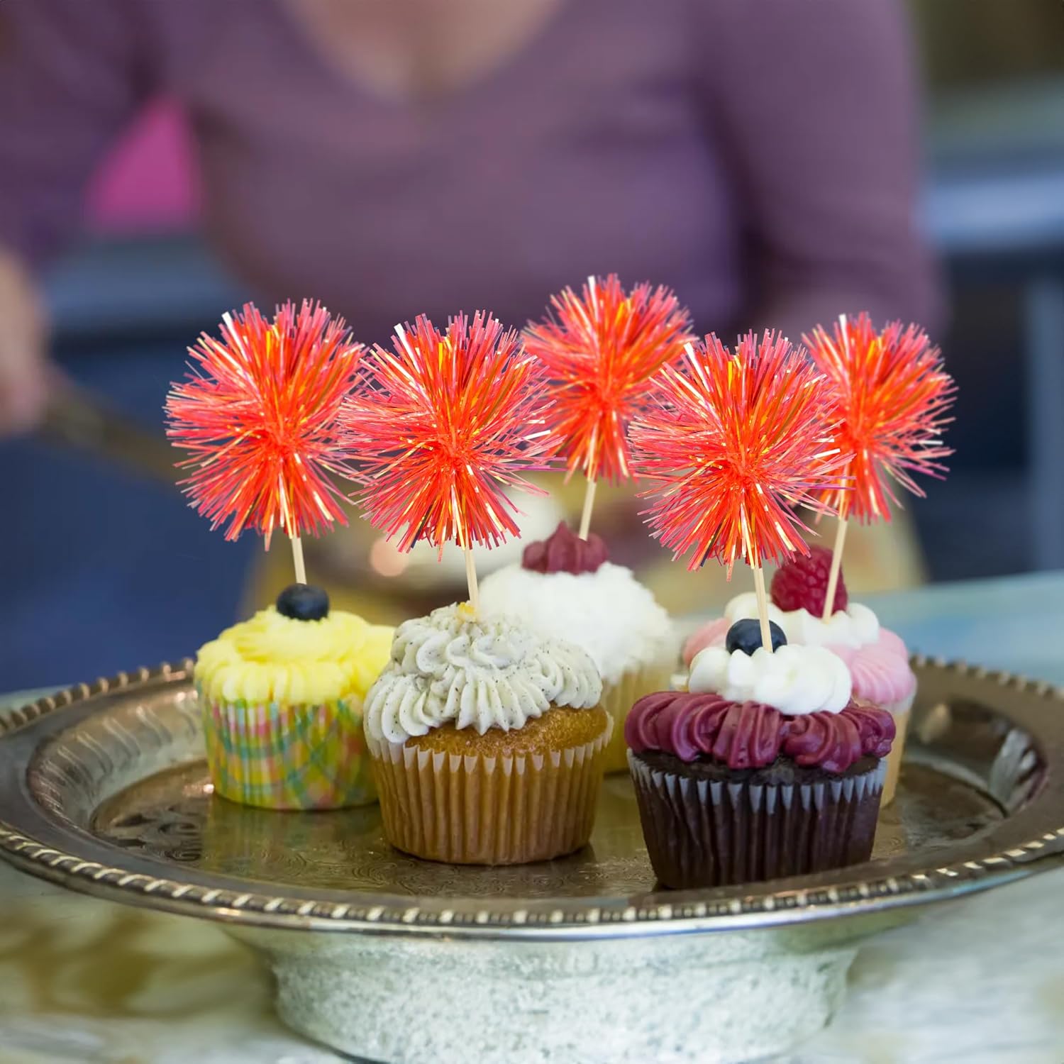 • -Premium Material: These Foil Firework Cupcake Toppers are made of high quality foil and food-grade toothpick, very safe to put them on cakes, cupcakes, ice cream, fruits, pie, dessert, cheese or any dish and food appetizer you want to decorate.