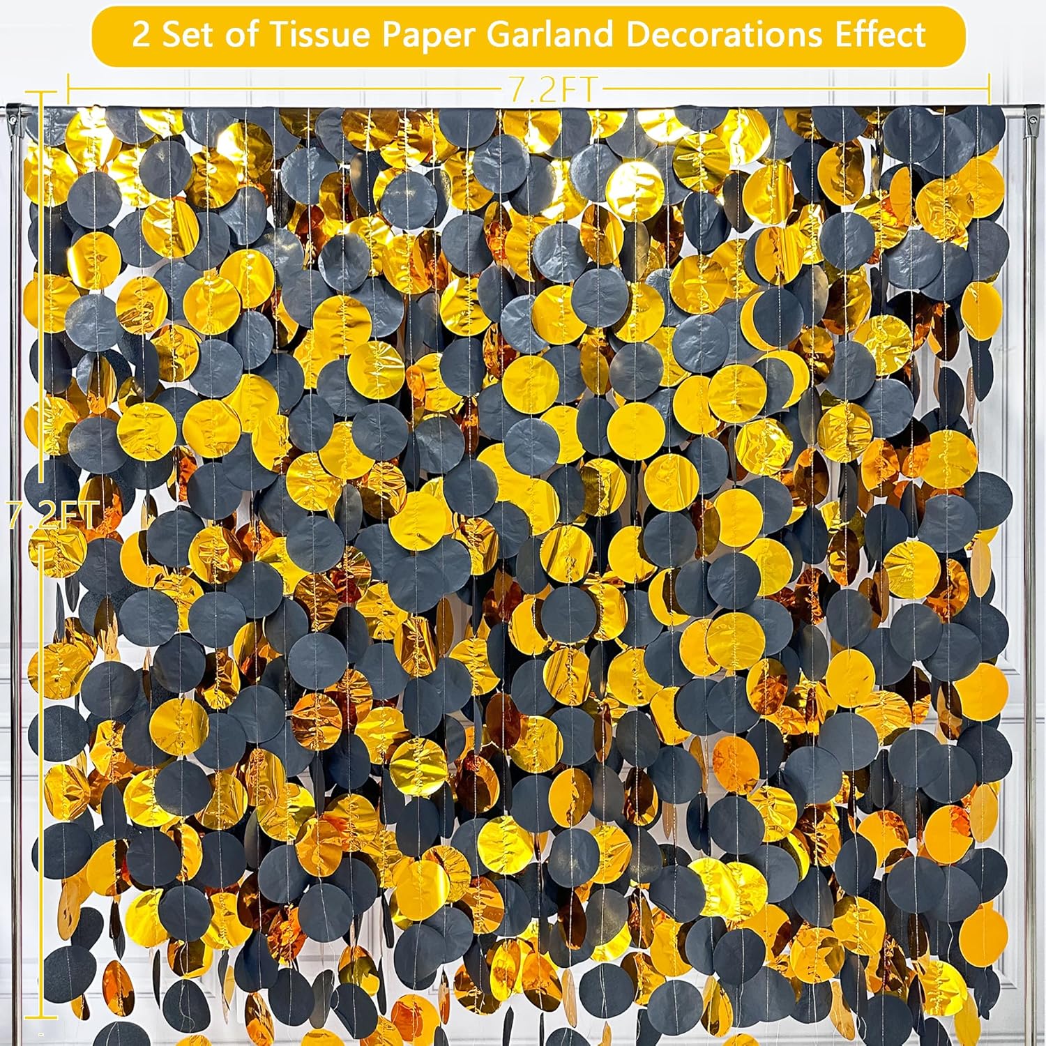 205Ft Black Gold Party Decorations Circle Dot Garland Backdrop Black Tissue Paper Gold Foil Polka Dot Streamer for Graduation Birthday Anniversary Halloween Christmas Holiday New Year Party Supplies