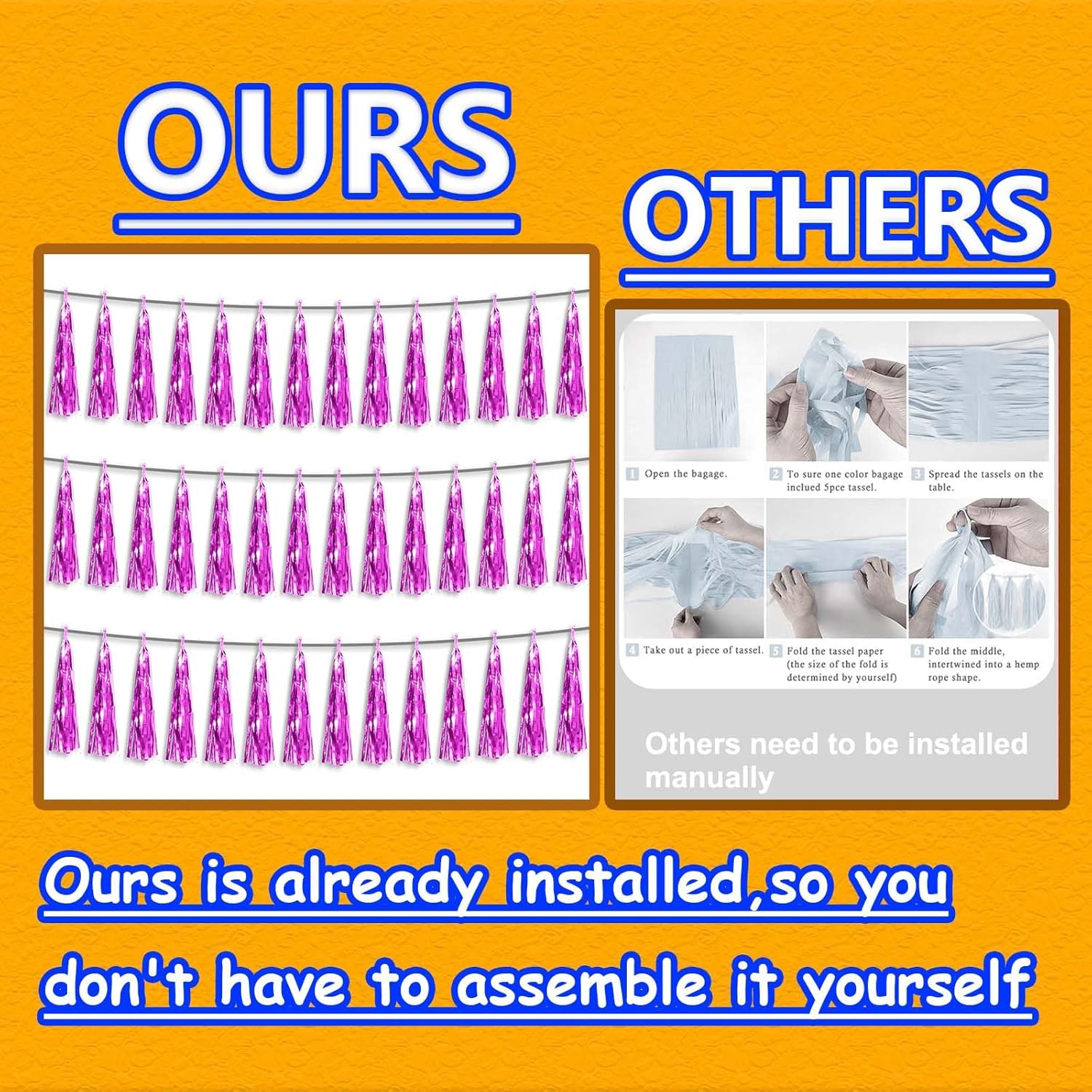 • 【Package Includes】The total length of the hot pink birthday tassels banner is 30 feet, divided into 3 strips, each 10 feet long. Each banner contains 15 tassels, and each tassel measures 14 inches, for birthday decorations many occasions uitable for Patriotic display, Homecoming Float, Christmas Float, ecorative metal trailers, graduation floats etc