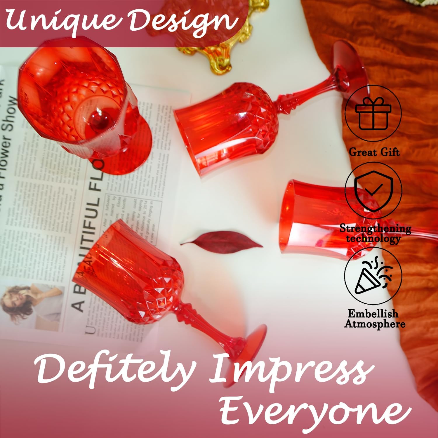 • 🍷🍷🍷【Product Description】 This set includes 48 retro-style red party plastic wine glasses, providing ample quantity to meet your daily use and replacement needs. The elegant and sophisticated design makes your wedding reception unique.