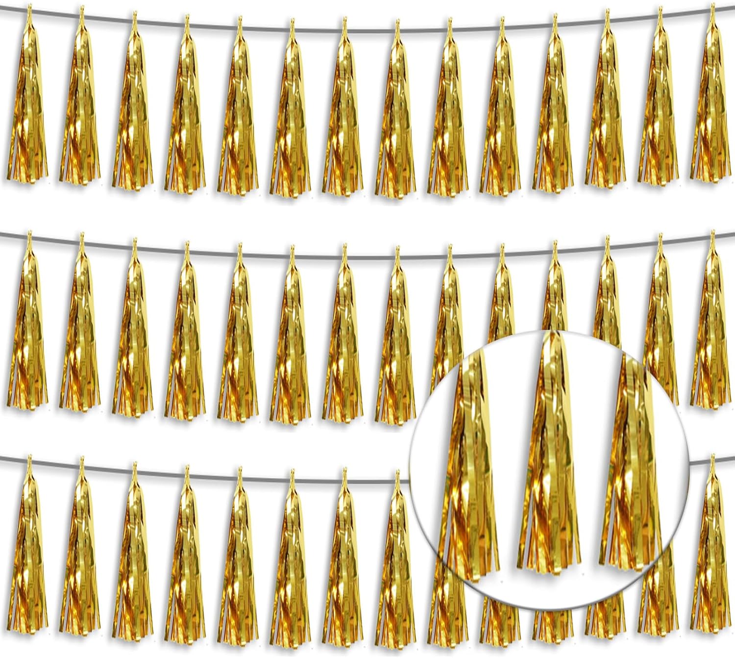 3P Metallic Fringe Tassel Banner Garland Foil Tinsel Streamer Wall Hanging Curtain Backdrop Banner for Parade Floats, Graduation Decorations, Wedding Party Decoration(Gold)