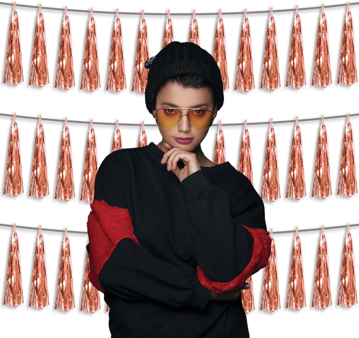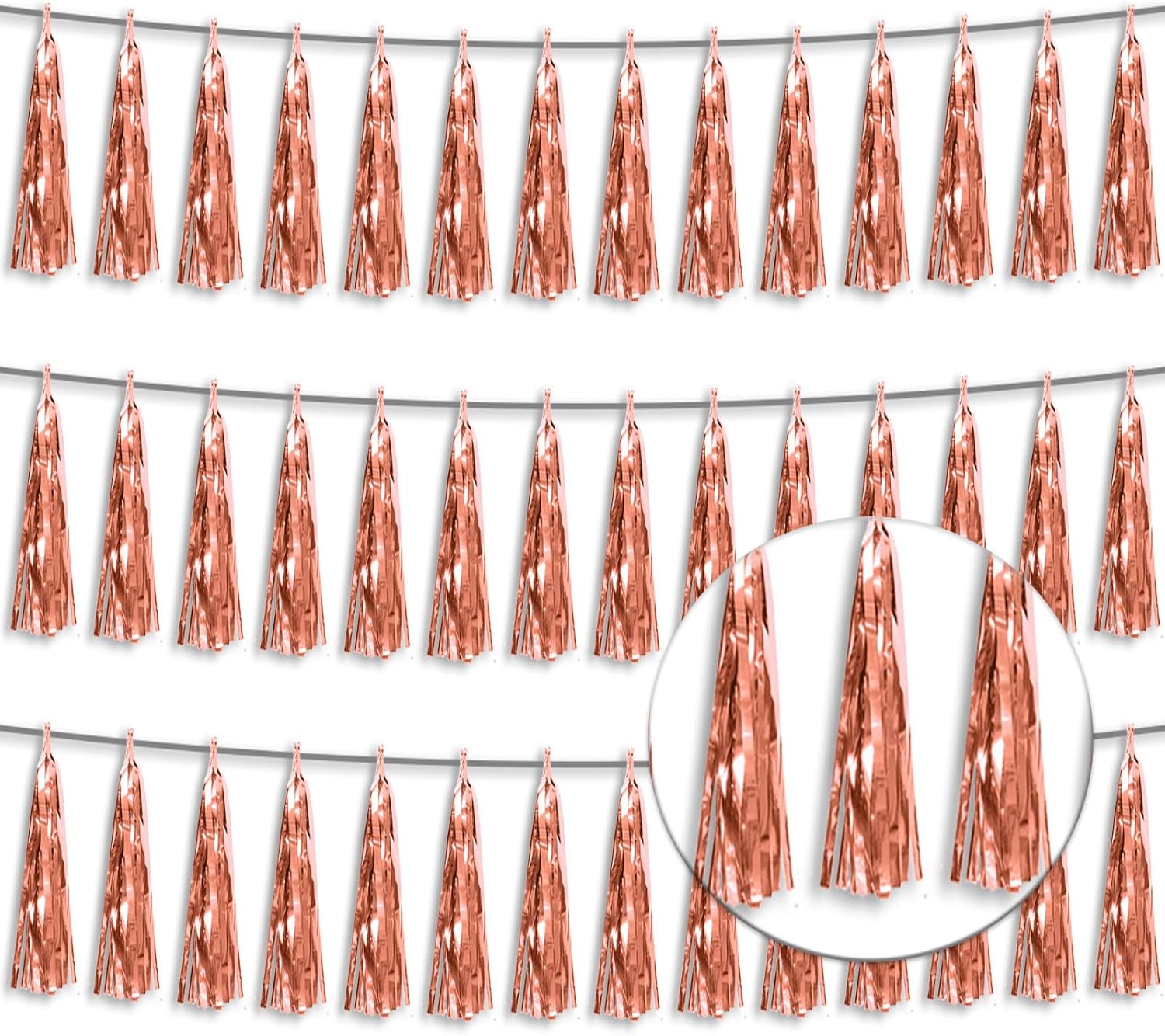3P Metallic Fringe Tassel Banner Garland Foil Tinsel Streamer Wall Hanging Curtain Backdrop Banner for Parade Floats,Graduation Decorations, Wedding Party Decoration(Rose Gold)