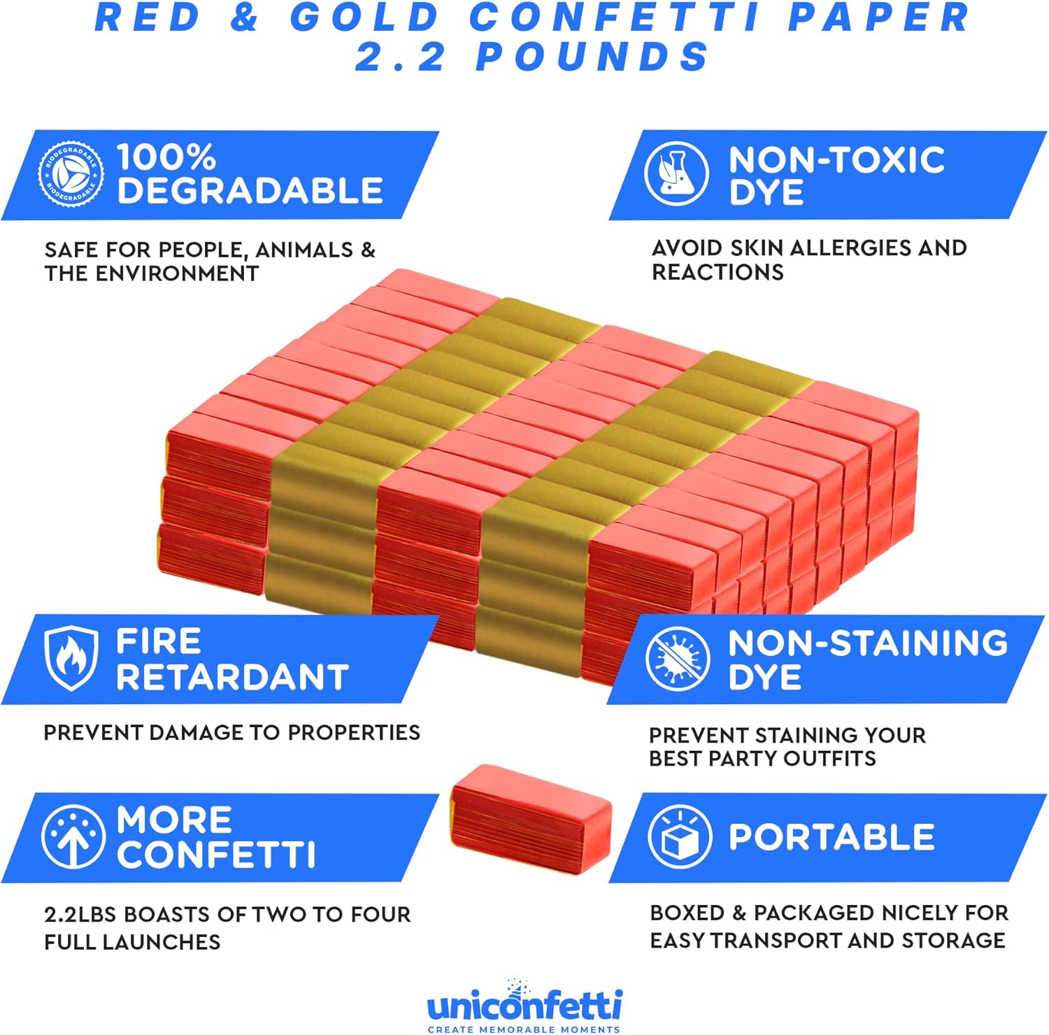 Red & Gold Confetti Paper - BULK 2.2lbs | 1kg, Biodegradable Tissue Paper, Rainbow Light Weight, Non-Staining Paper, for Events, Crafts, Decorations