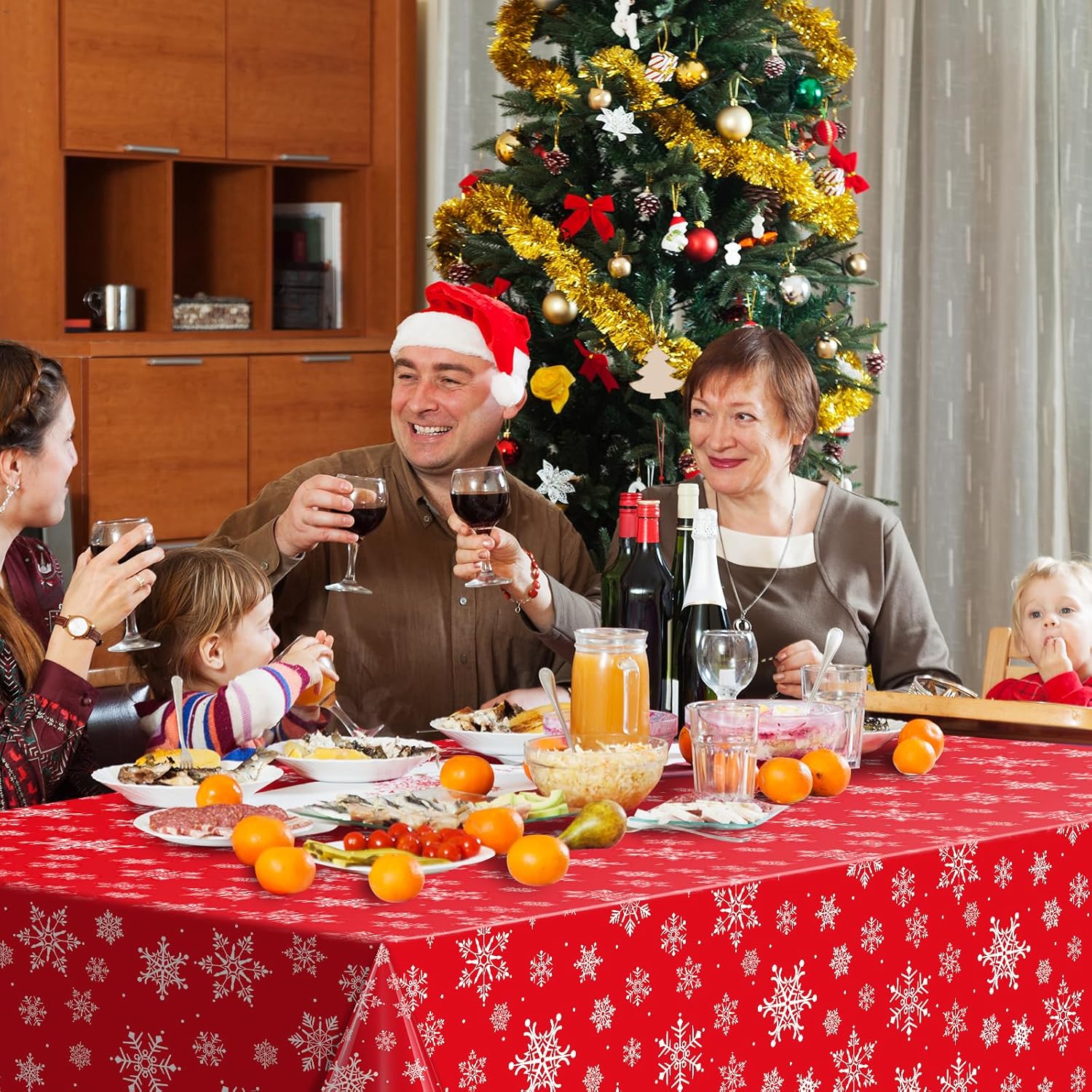• Extra large size:these red snowflake Christmas party tablecloth measures approx. 137x274cm/54X108 inch, which fits for 8 feet long tables that can accommodate 8-10 people, It’s large enough for your to hold a winter holiday and Christmas theme party with your family and friends to share happiness