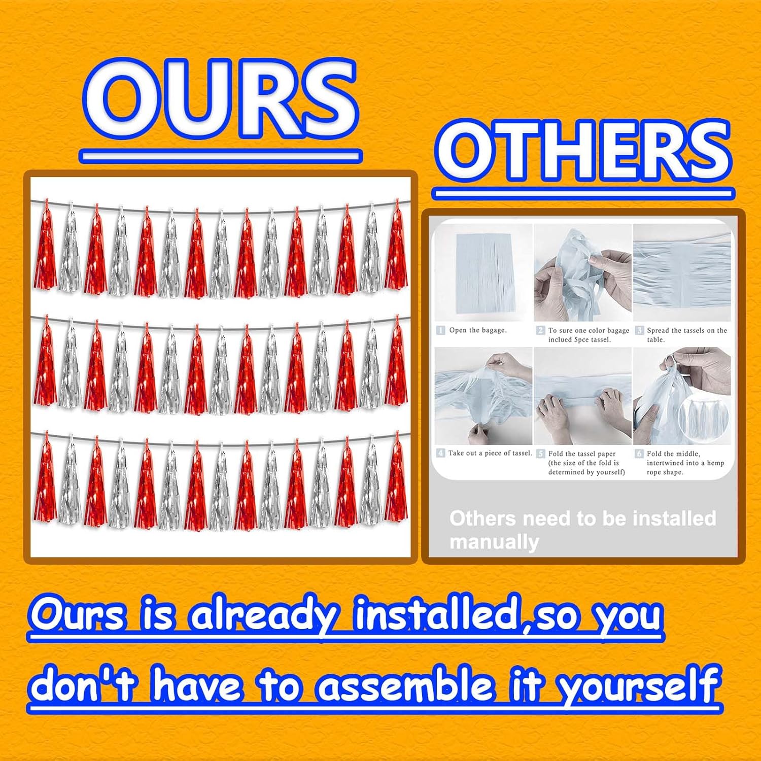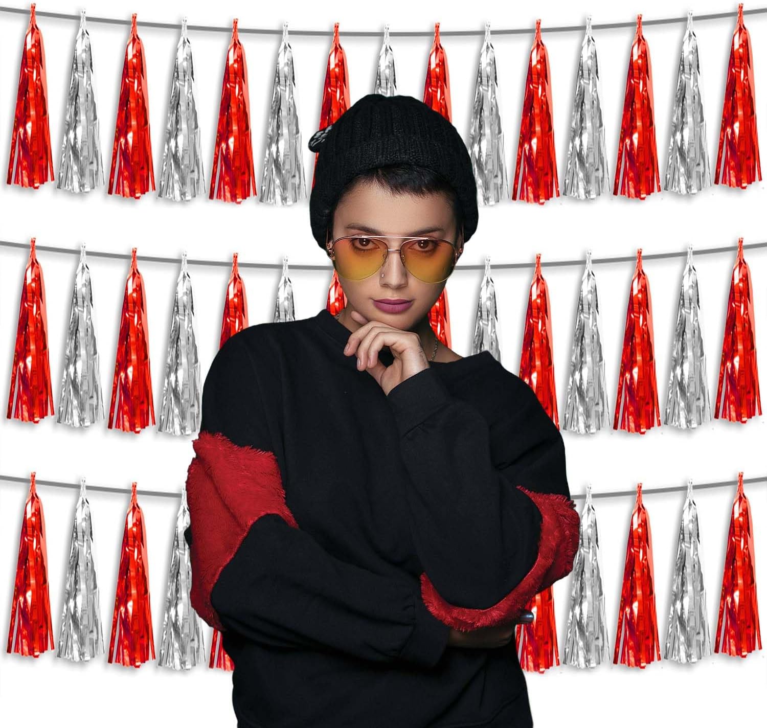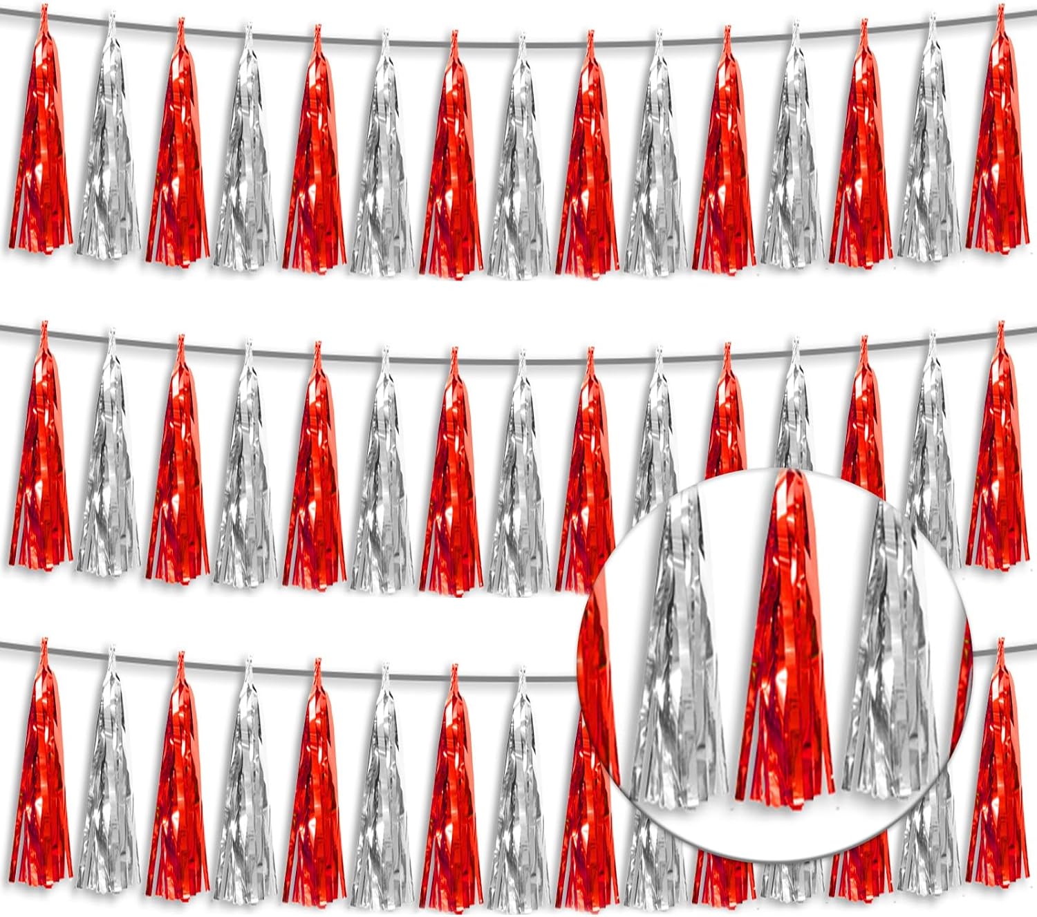 • 【Package Includes】The total length of the red silver birthday tassels banner is 30 feet, divided into 3 strips, each 10 feet long. Each banner contains 15 tassels, and each tassel measures 14 inches, for birthday decorations many occasions uitable for Patriotic display, Homecoming Float, Christmas Float, ecorative metal trailers, graduation floats etc