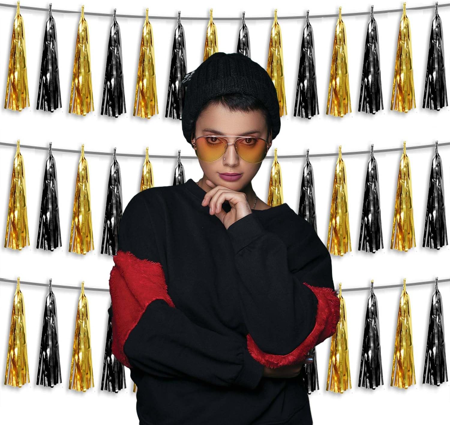 • 【Package Includes】The total length of the black gold birthday tassels banner is 30 feet, divided into 3 strips, each 10 feet long. Each banner contains 15 tassels, and each tassel measures 14 inches, for birthday decorations many occasions uitable for Patriotic display, Homecoming Float, Christmas Float, ecorative metal trailers, graduation floats etc