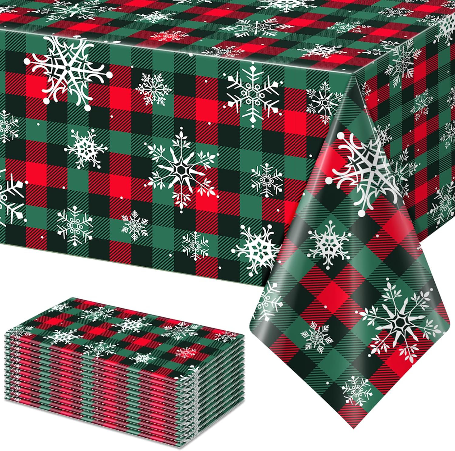 • What will you receive: 12 pieces plastic Christmas party tablecloth,all over printed with white snowflake patterns on red and green buffalo plaid background,ideal for decorating your winter holiday Christmas party supplies and decorations