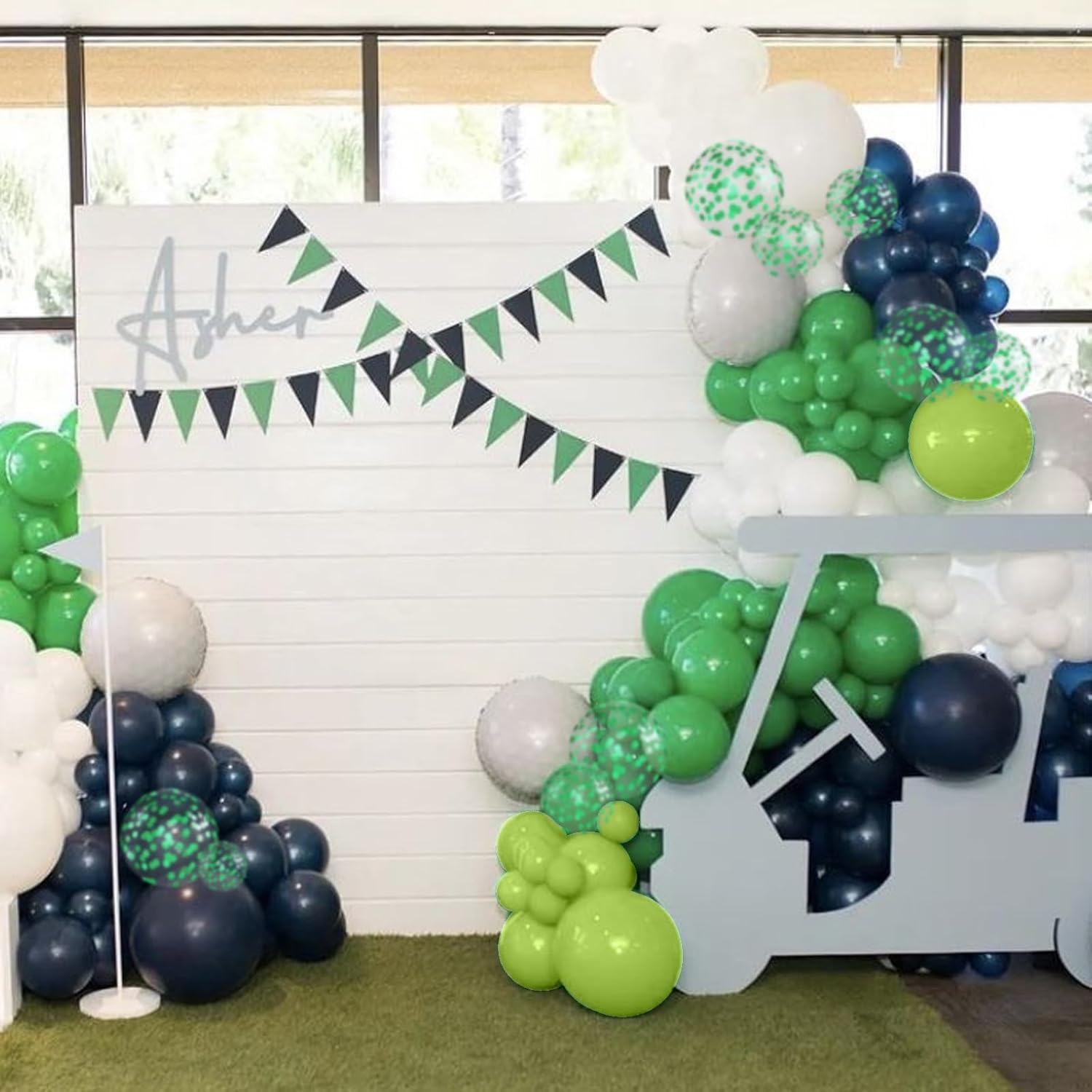 Navy Blue Green Balloons, 12 Inchs White Dark Green Confetti Balloons for Boys Kids Dinosaur Birthday Safari Jungle Theme Golf Party Baby Shower Wedding Grauation Decorations