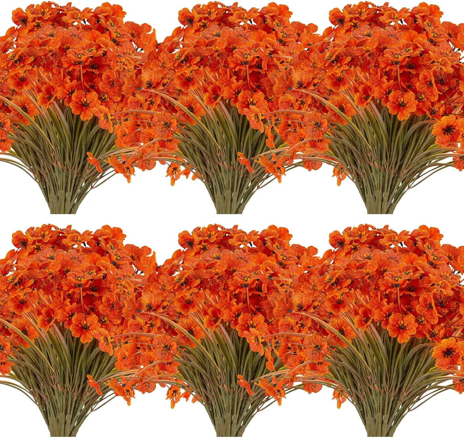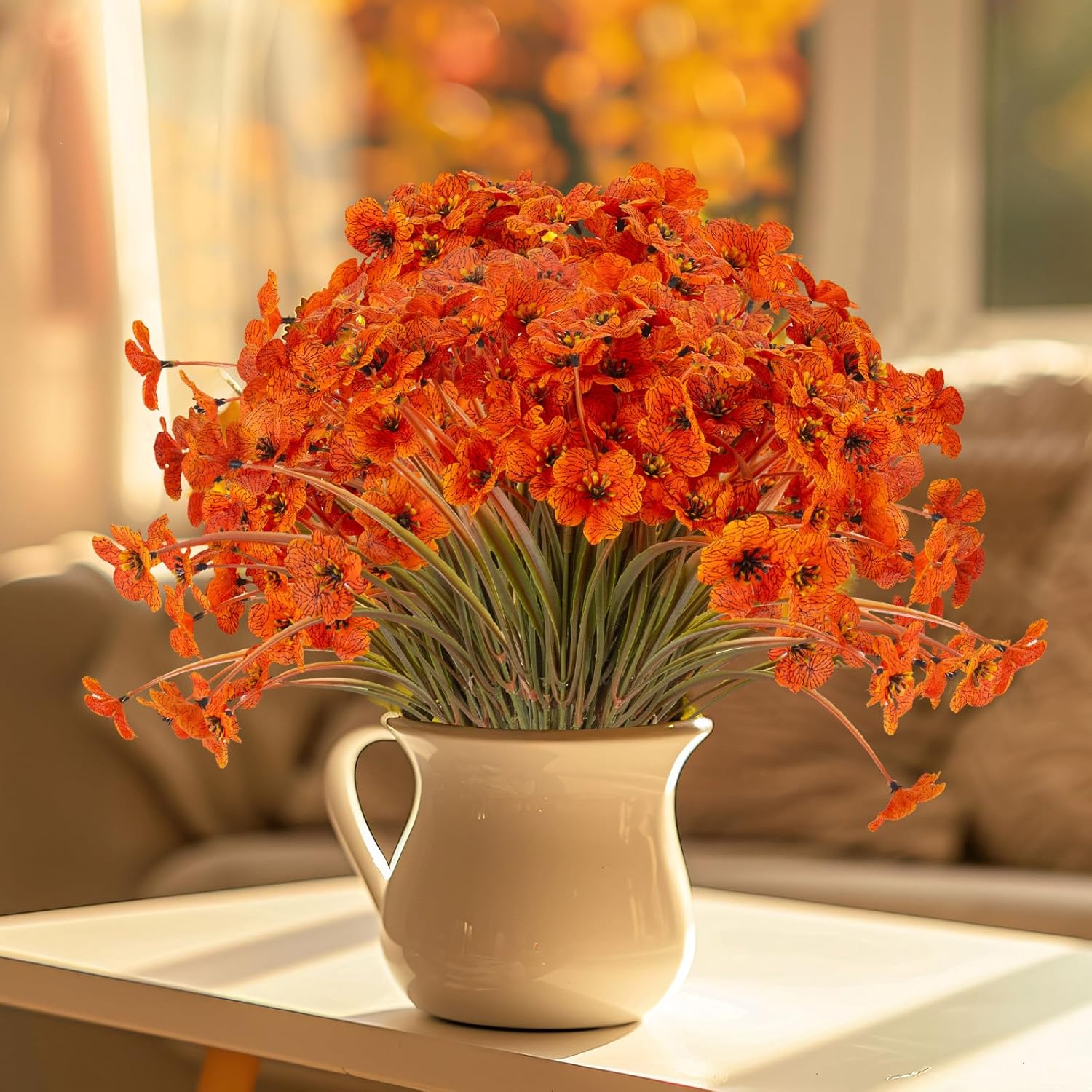 • 【Care Free】: The orange flower heads abandon the traditional plastic flower heads (the single color is easy to fade and the decoration is unstable). These artificial fall plants are UV resistant. The high-end appearance artificial flowers are very suitable for any landscaping project or decoration style, without worrying about the sun, watering, pruning or other maintenance; no matter where you choose to display, these artificial fall flowers will always bloom.