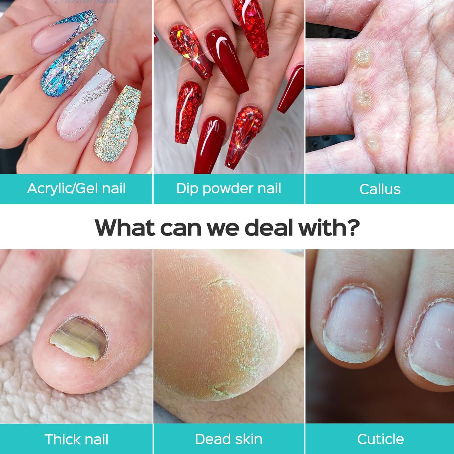 • Multifunctional & Easy to Use: This cordless electric nail drill is not only suitable for acrylic nails, gel nails, dip powder and natural nails, but also can remove cuticles, dead skin, thick nails and calluses. Suitable ​not only for women and men, but also effective for seniors in gently exfoliating rough skin, the stepless speed adjustment method can be accurately and easily applied to various manicure and pedicure procedures