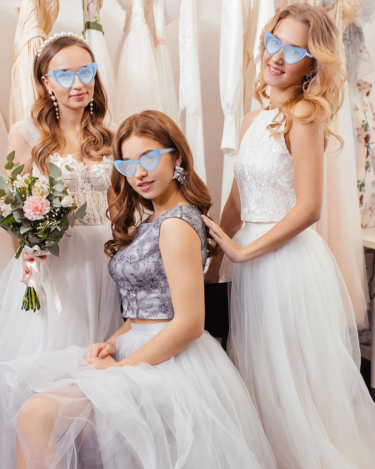 Flutesan 20 Pairs Retro Heart Sunglasses Vintage Cat Eye Heart Glasses Women Bachelorette Bride Sunglasses Bulk