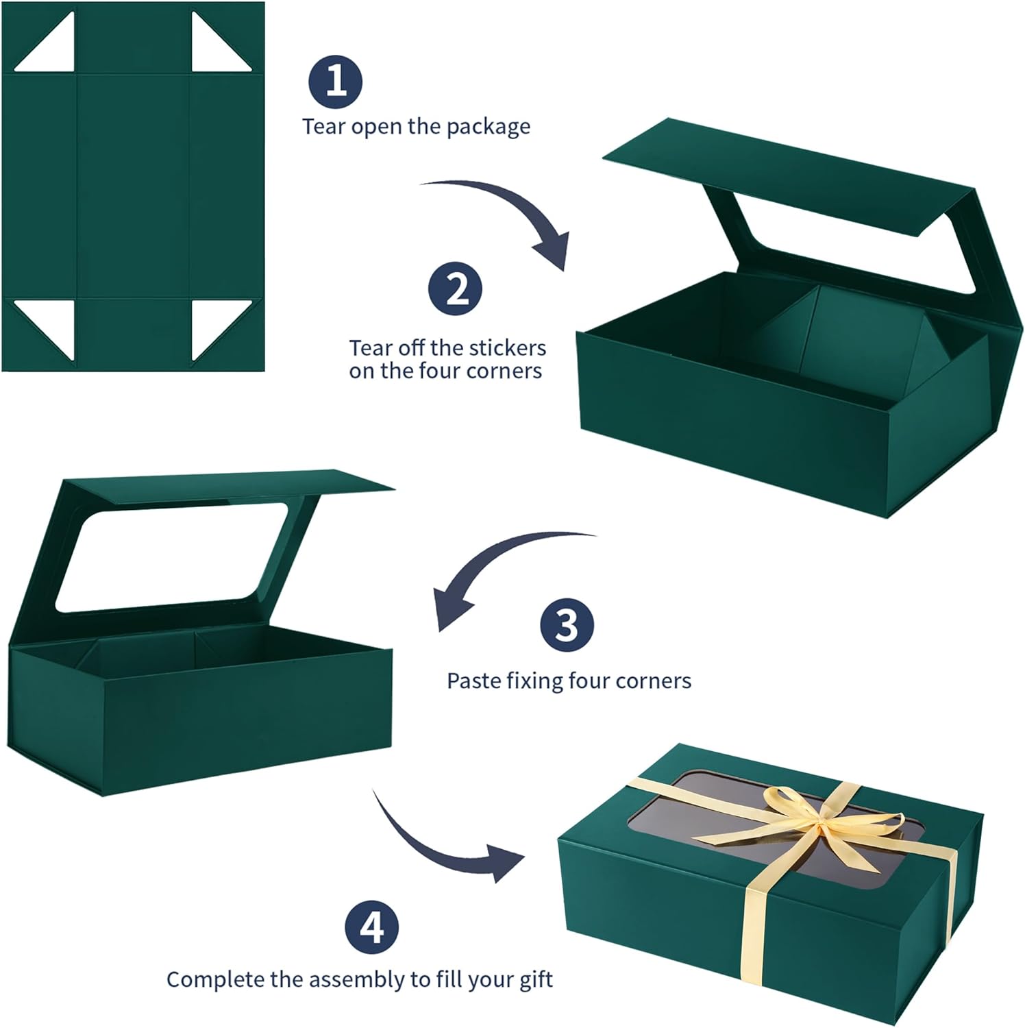 • 🎁GIFT BOX SIZE: Magnetic gift boxes,13.5x9x4.3 inches.Gift boxes are all flat transportation,Quick assembly, no extra tape required, easy to fold together in 2 steps, just peel off the triangle sticker, then assemble and glue the box. Save your valuable time and effort.