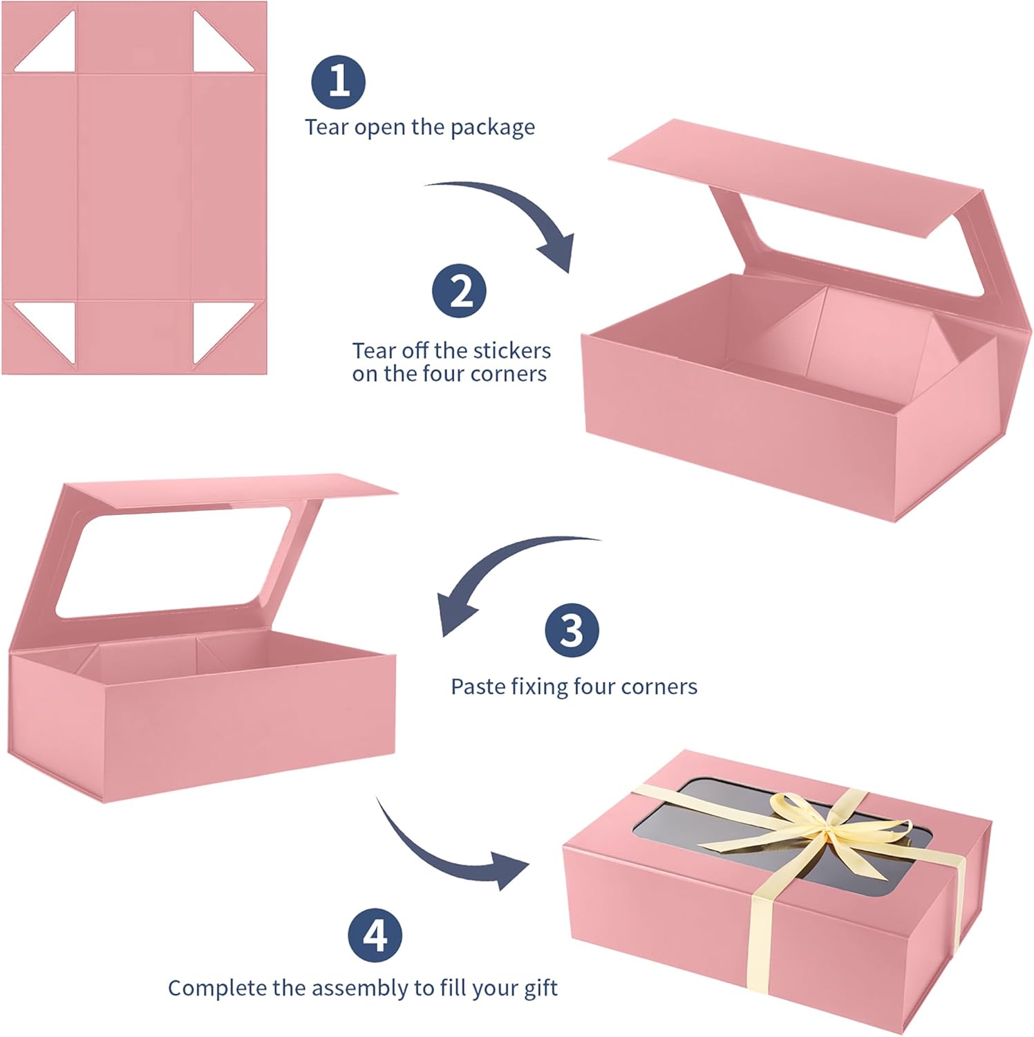 • 🎁GIFT BOX SIZE: Magnetic gift boxes,13.5x9x4.3 inches.Gift boxes are all flat transportation,Quick assembly, no extra tape required, easy to fold together in 2 steps, just peel off the triangle sticker, then assemble and glue the box. Save your valuable time and effort.