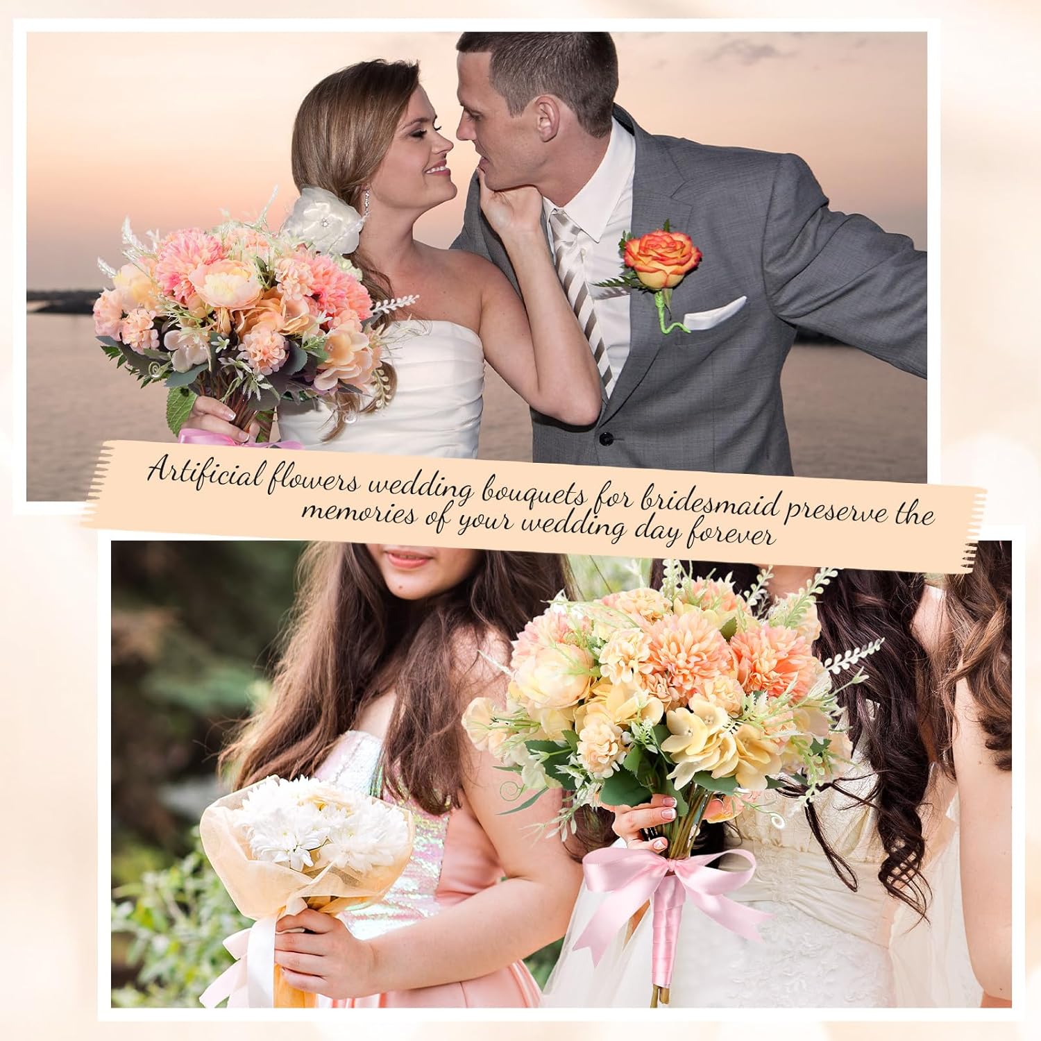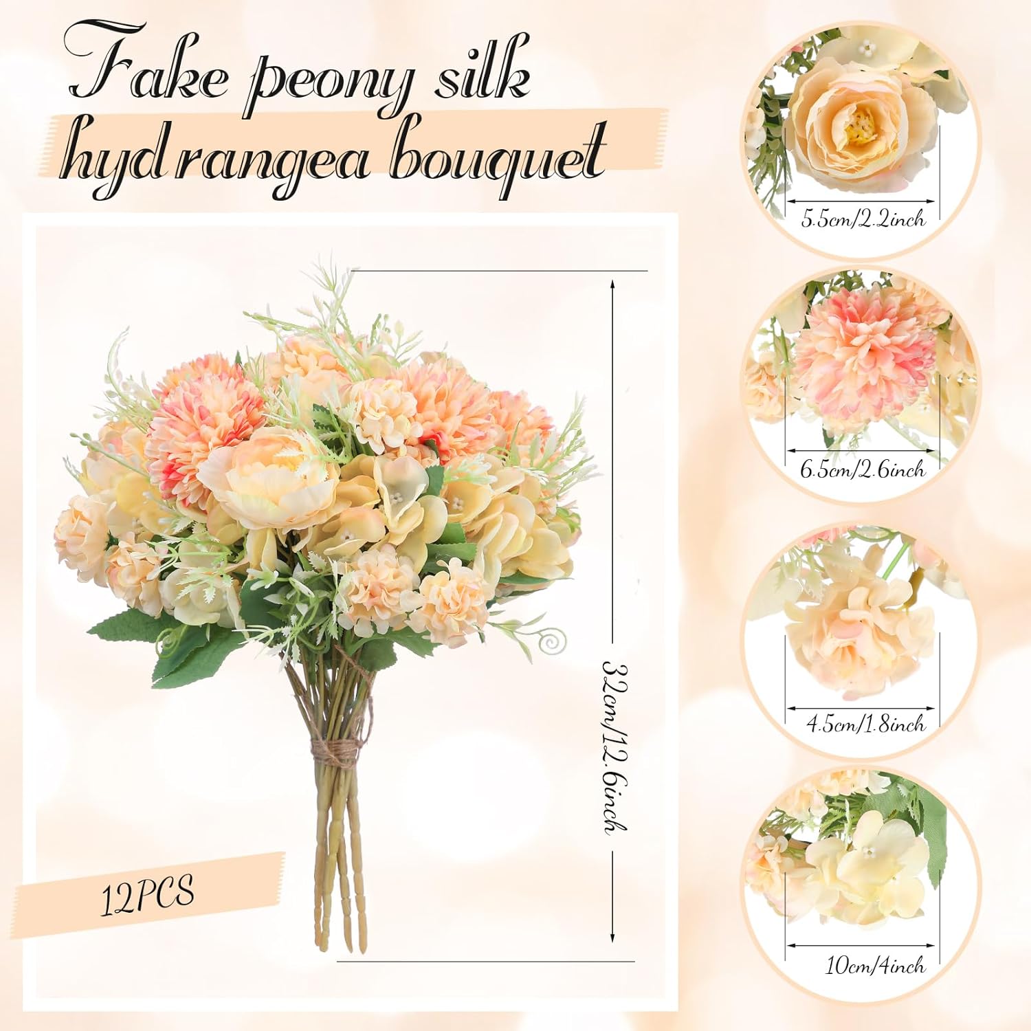 Tigeen Artificial Flowers Artificial Peonies Silk Flowers Faux Peony Fake Peony Silk Hydrangea Bouquet for Wedding Table Centerpiece Floral Vase Decor(Orange,12 Bundles)