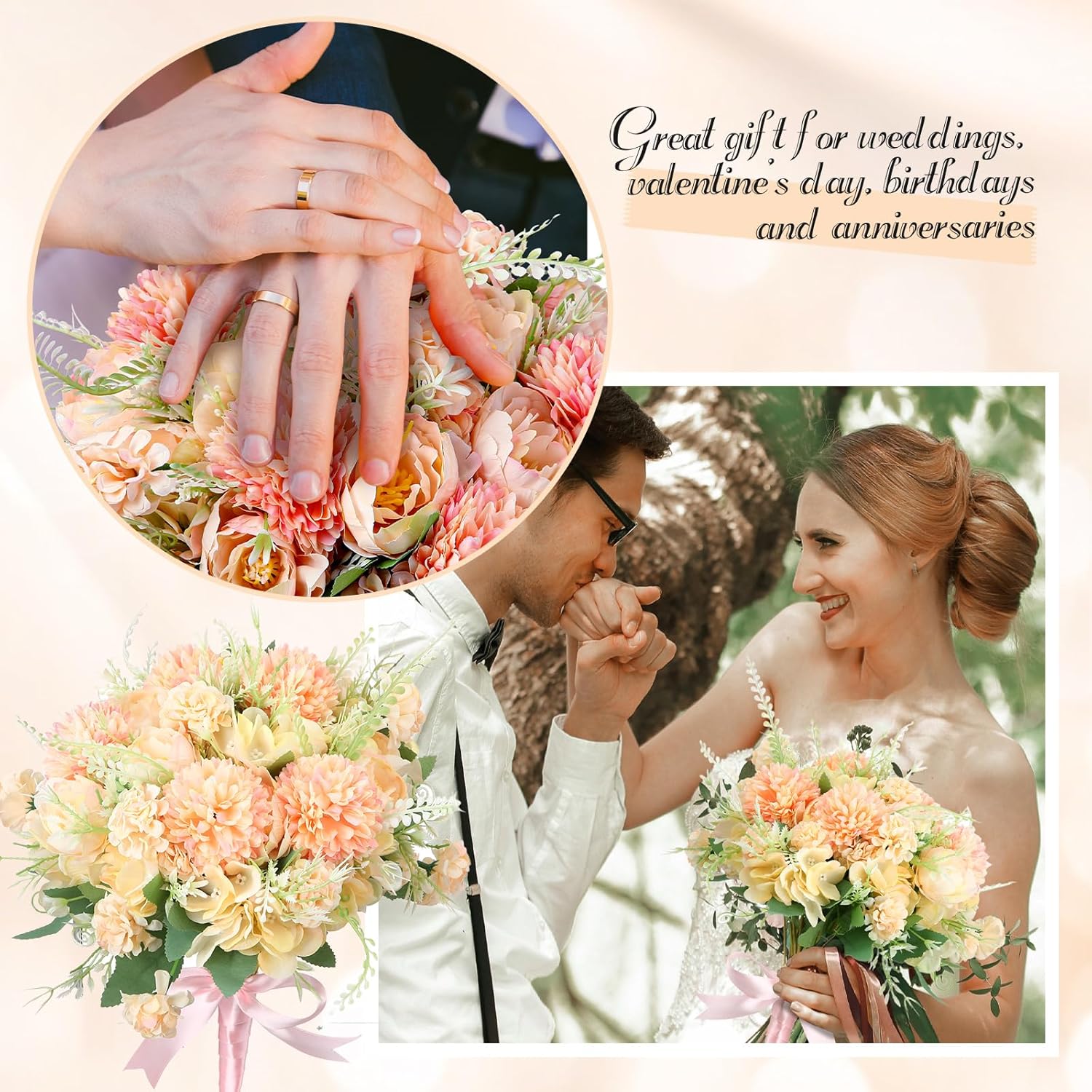 • Attractive Appearance: the fake flowers bouquet is shaped with orange peonies, embellished with green leaves, vivid and beautiful, designed with 7 flower heads as a bundle, including hydrangea, peony and more, bushy and vibrant, which will be favored by most people