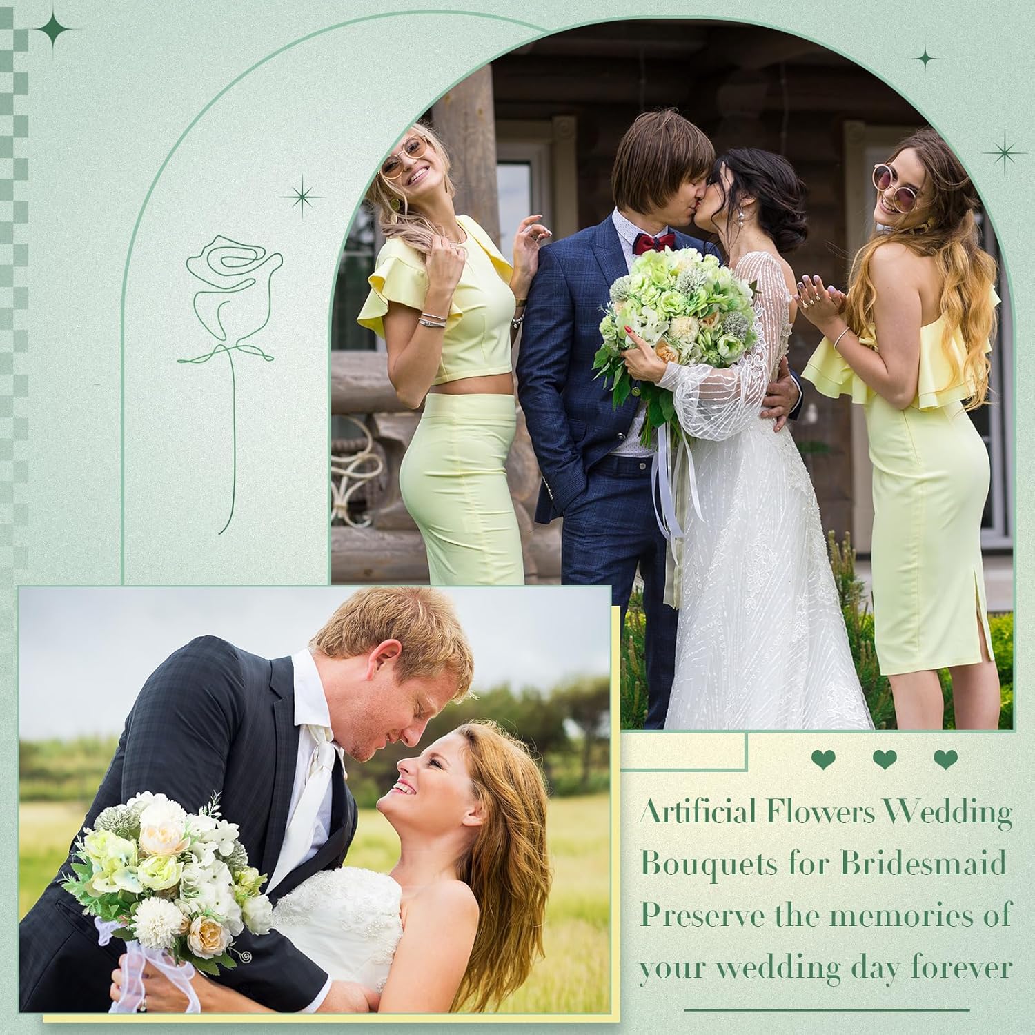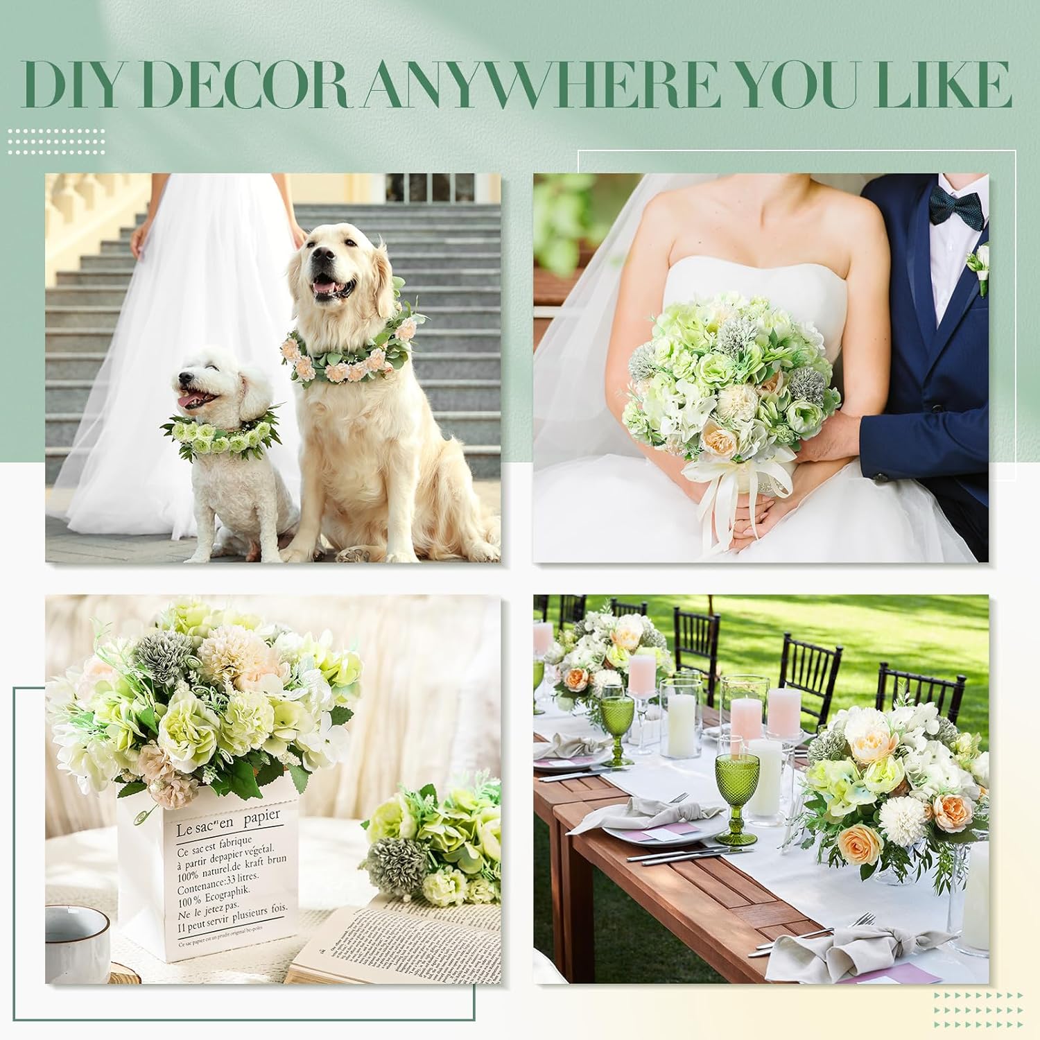 • Attractive Appearance: the fake flowers bouquet is shaped with white and green peonies, embellished with green leaves, vivid and beautiful, designed with 7 flower heads as a bundle, including hydrangea, peony and more, bushy and vibrant, which will be favored by most people