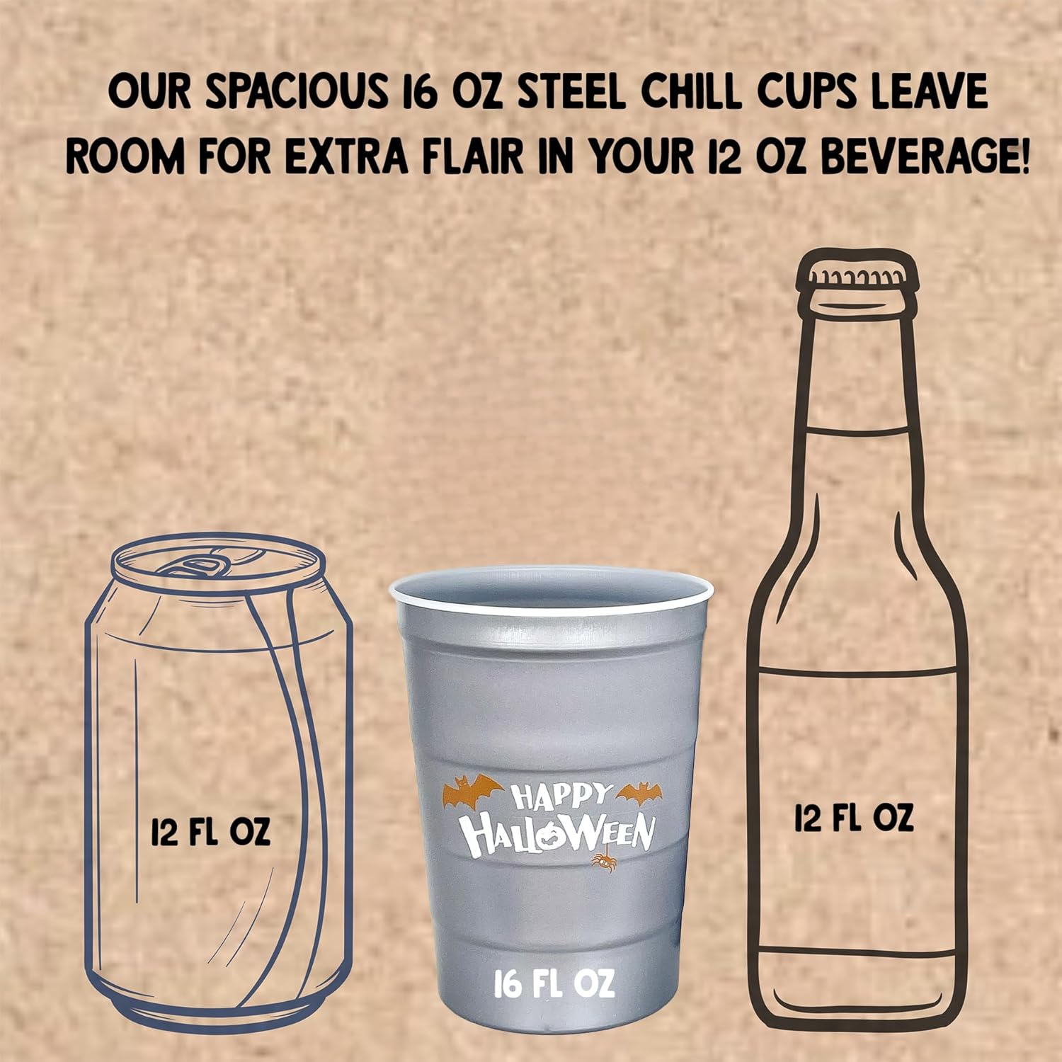 • Earth-Friendly Drinkware: Unlike plastic party cups that end up in landfills, sustainable Halloween Steel Chill Cups are 100% recyclable; reuse hand-washable cups for your corporate event