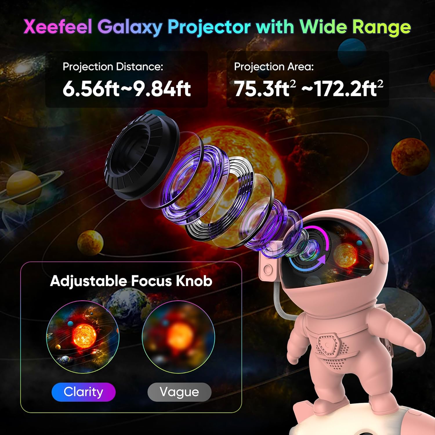 • Perfect Gift and Room Decor: This galaxy projector ideal for birthdays, Children's Day, Christmas, or simply enhancing your room's ambiance. Best used in dark environments at a distance of 6.56 ft for optimal effect. This astronaut galaxy projector is a thoughtful gift for both kids and adults. If you have any questions, please let me know.