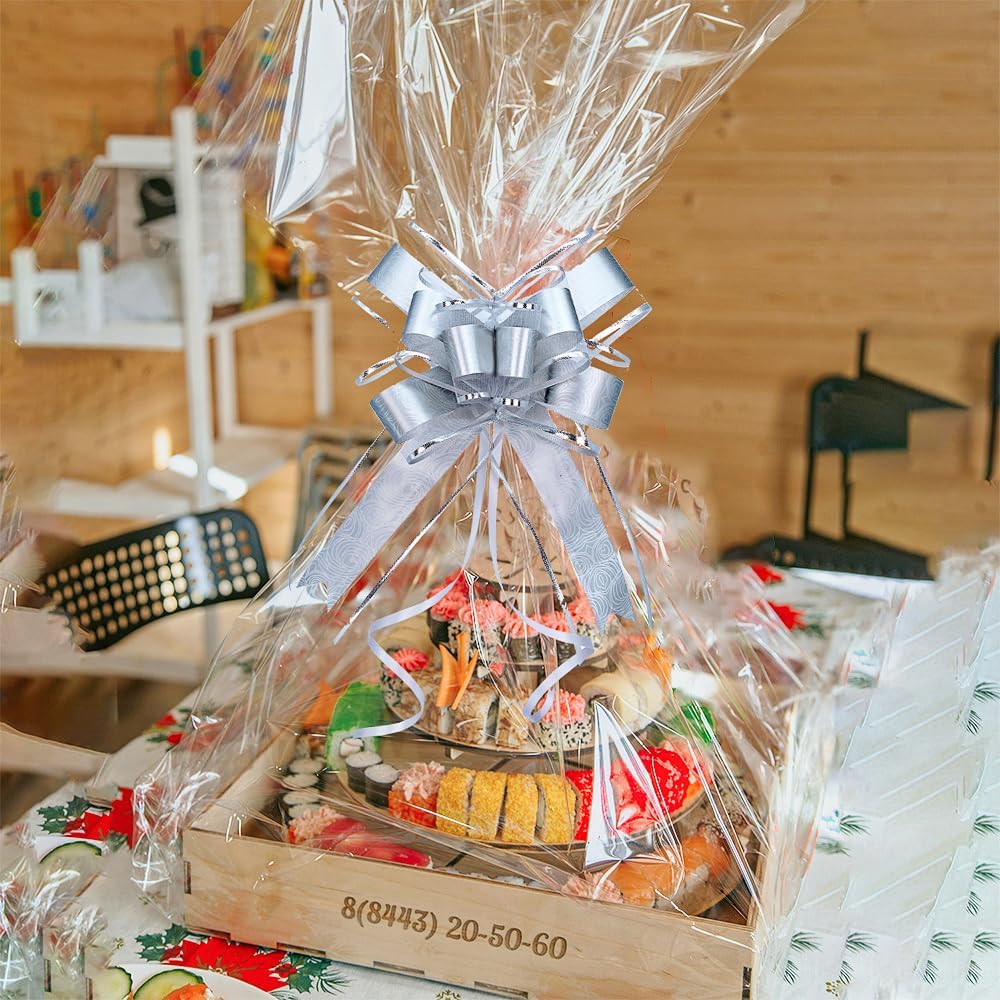 WEWILUCK Big Bow for Present, 15 PCS Pull Gift Bows for Gift Wrapping, Gift Baskets, Christmas, Wedding, and Birthday Party Decor(Silver with Rose Pattern, 6 inches)