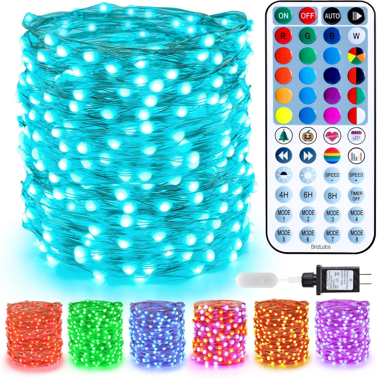 BrizLabs Color Changing Fairy Lights - 33ft 100 LED Christmas Fairy Lights with Remote, Rainbow Xmas Tree Light with Timer, RGB Halloween Light Music Sync Twinkle Light for Xmas Halloween Party Home