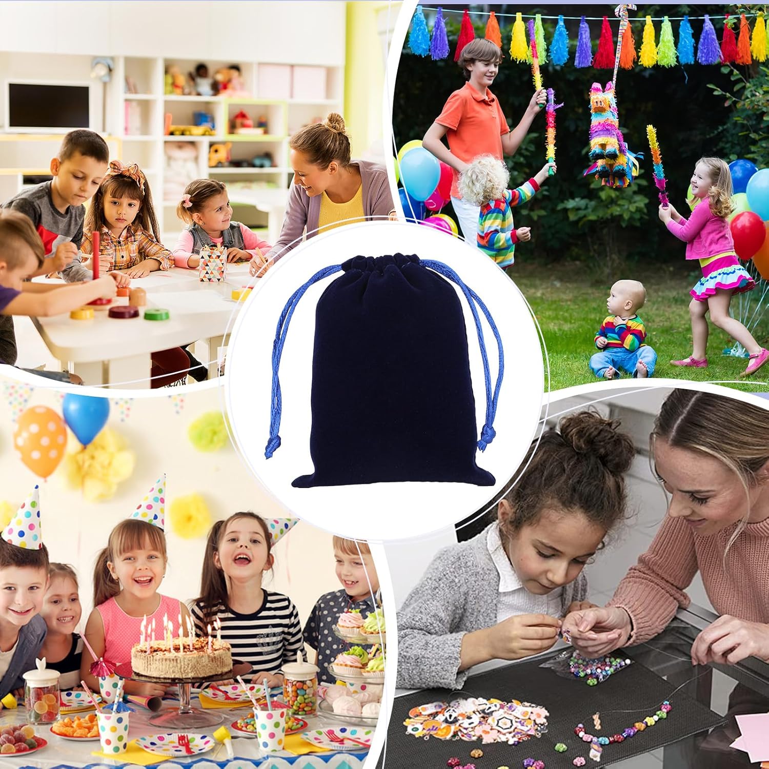 Velvet Drawstring Jewelry Bag, 50Pcs Blue Coin Pouch, 3x4 Dice Bag, for Small Jewelry, Wrapping Halloween Party Favors, Small Bussiness, Pendents, Bracelet, Customers