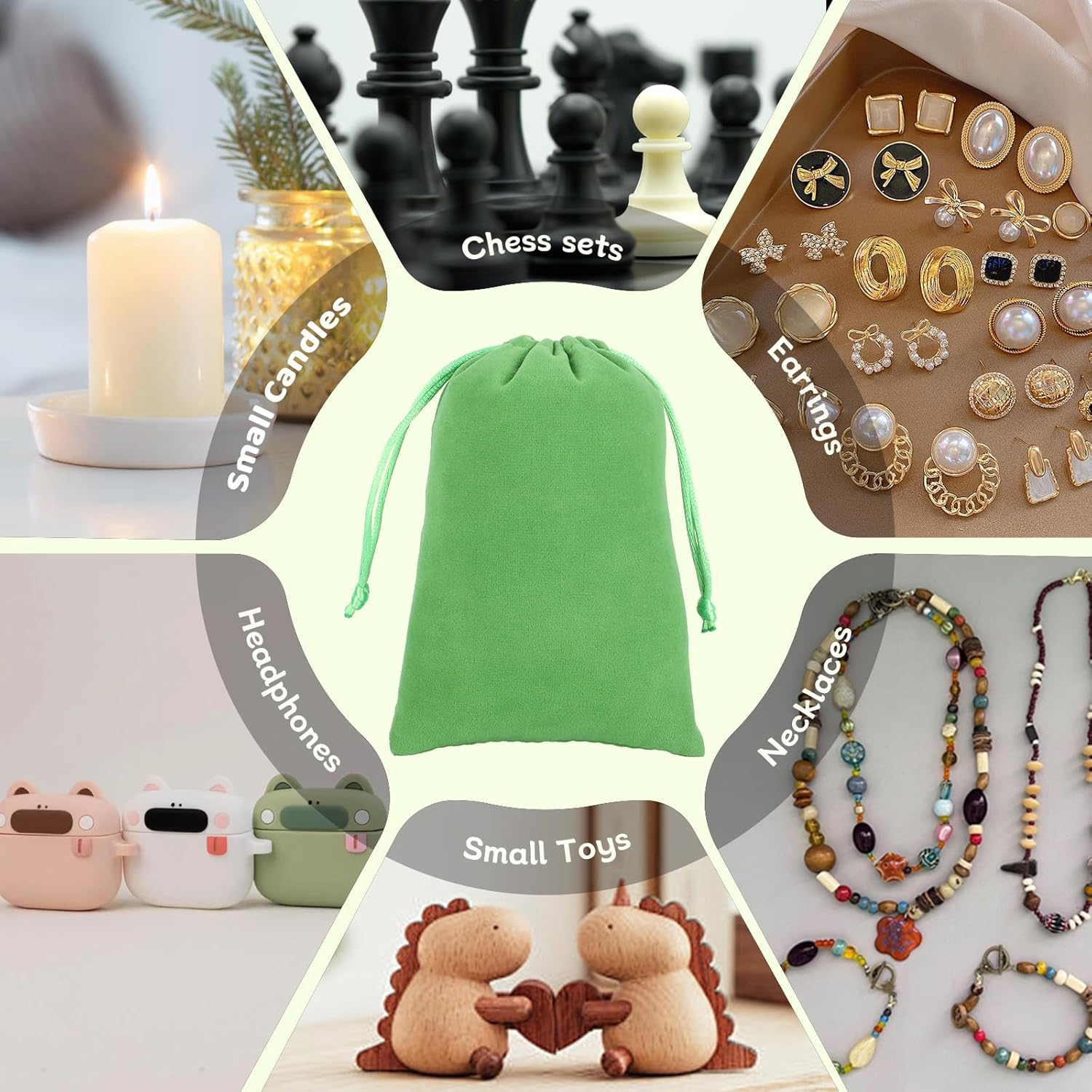 Velvet Drawstring Jewelry Bag, 50Pcs Green Coin Pouch, 4x6 Dice Bag, For Wrapping Halloween Party Favors, Small Jewelry, Small Bussiness, Palm Crosses, Necklaces, Bracelet