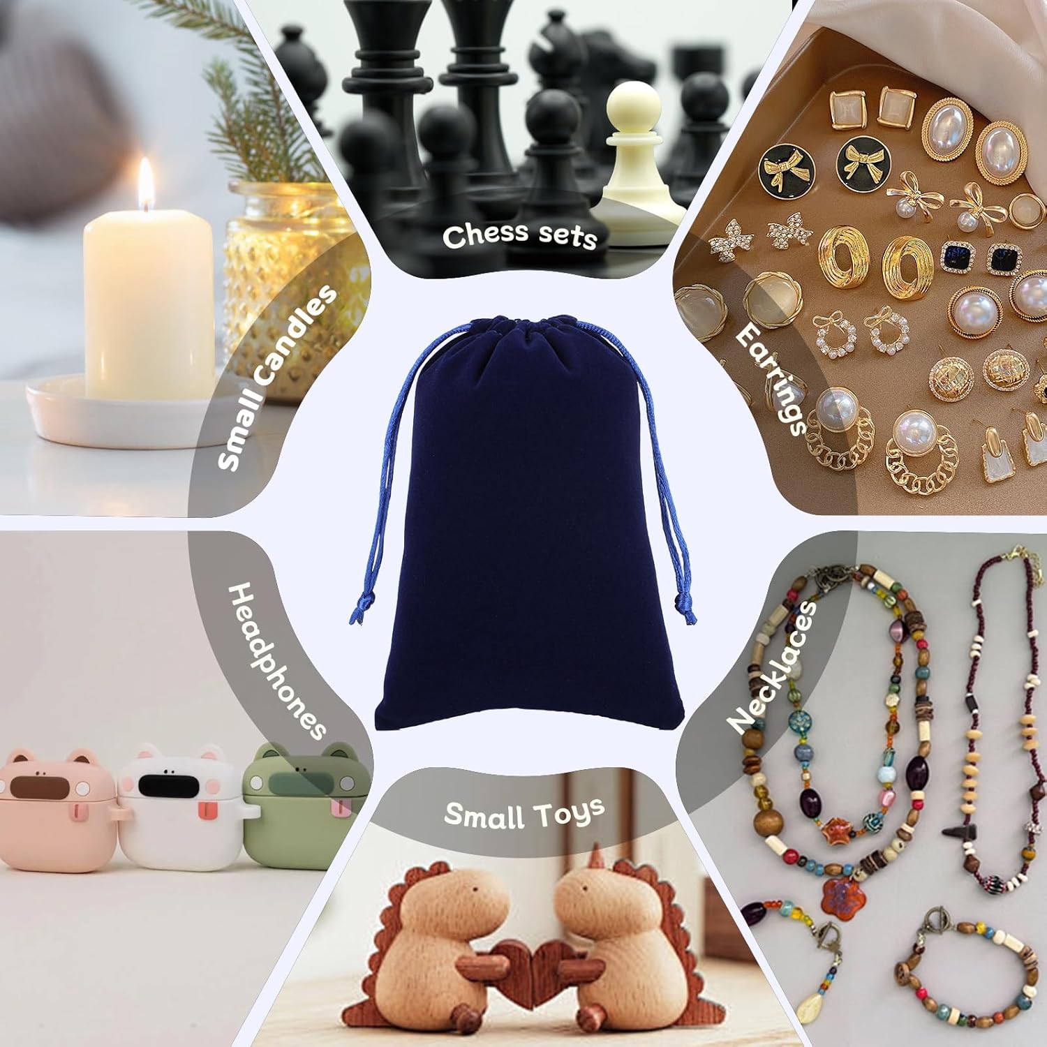 Velvet Drawstring Jewelry Bag, 50Pcs Blue Coin Pouch, 4x6 Tarot Card Holder For Wrapping Halloween Party Favors, Small Jewelry, Small Bussiness, Pendents, Bracelet, Customers