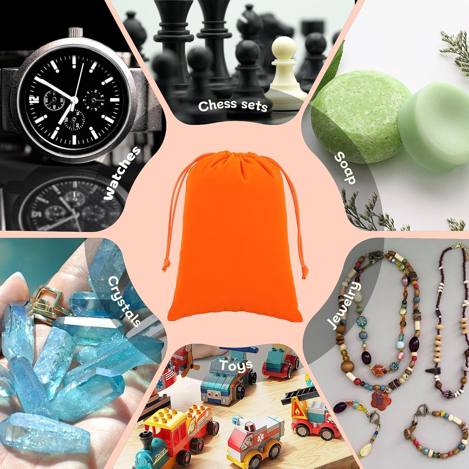 Velvet Drawstring Jewelry Bag, 50Pcs Orange Dice Bag, 5x7, Or Wrapping Halloween Party Favors, Toys, Small Bussiness, Craft Fair Vendor Supplies