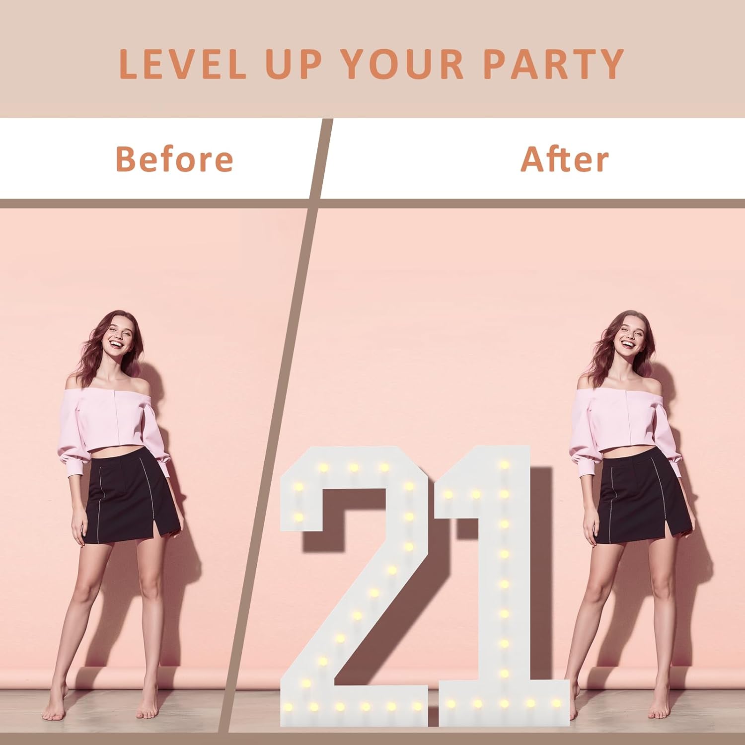 • Large Numbers for Party Decor: 4 FT White pre-cut foam mosaic number frame with warm white LED lights is an eye catching centerpiece for birthday party, anniversary and Christmas. It's also a great way to showcase the age or milestone being celebrated